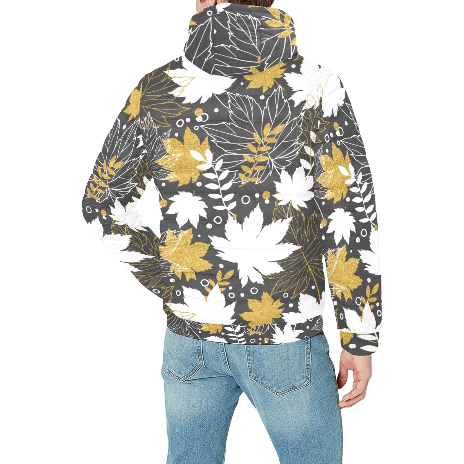 Beautiful gold autumn maple leaf pattern Men's Padded Hooded Jacket