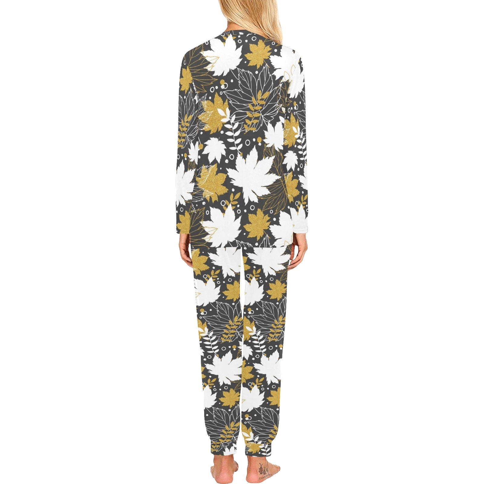 Beautiful gold autumn maple leaf pattern Women's All Over Print Pajama Set