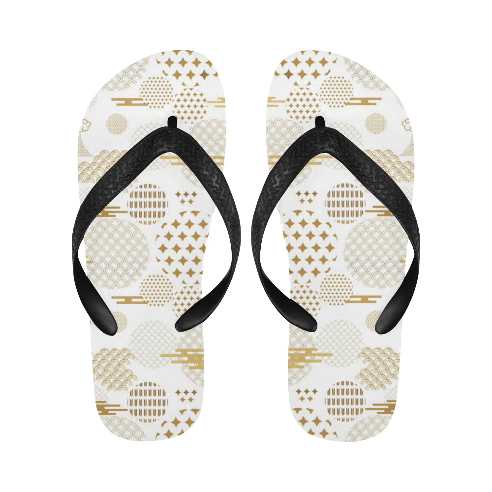Beautiful gold japanese pattern Unisex Flip Flops is a uniqued design and limited item. It made to order, hand printed, and sewn with love in our factory.