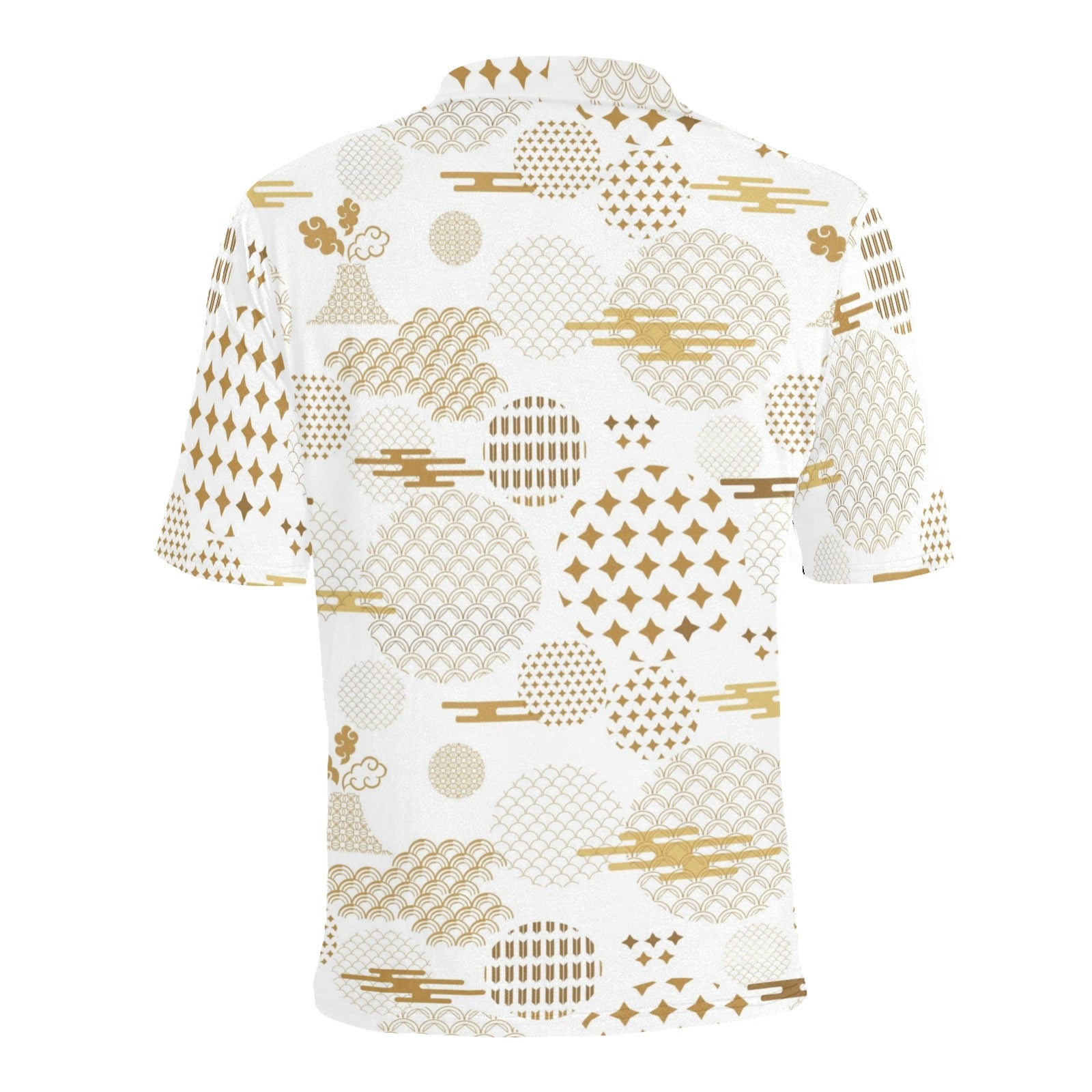 Beautiful gold japanese pattern Men's All Over Print Polo Shirt
