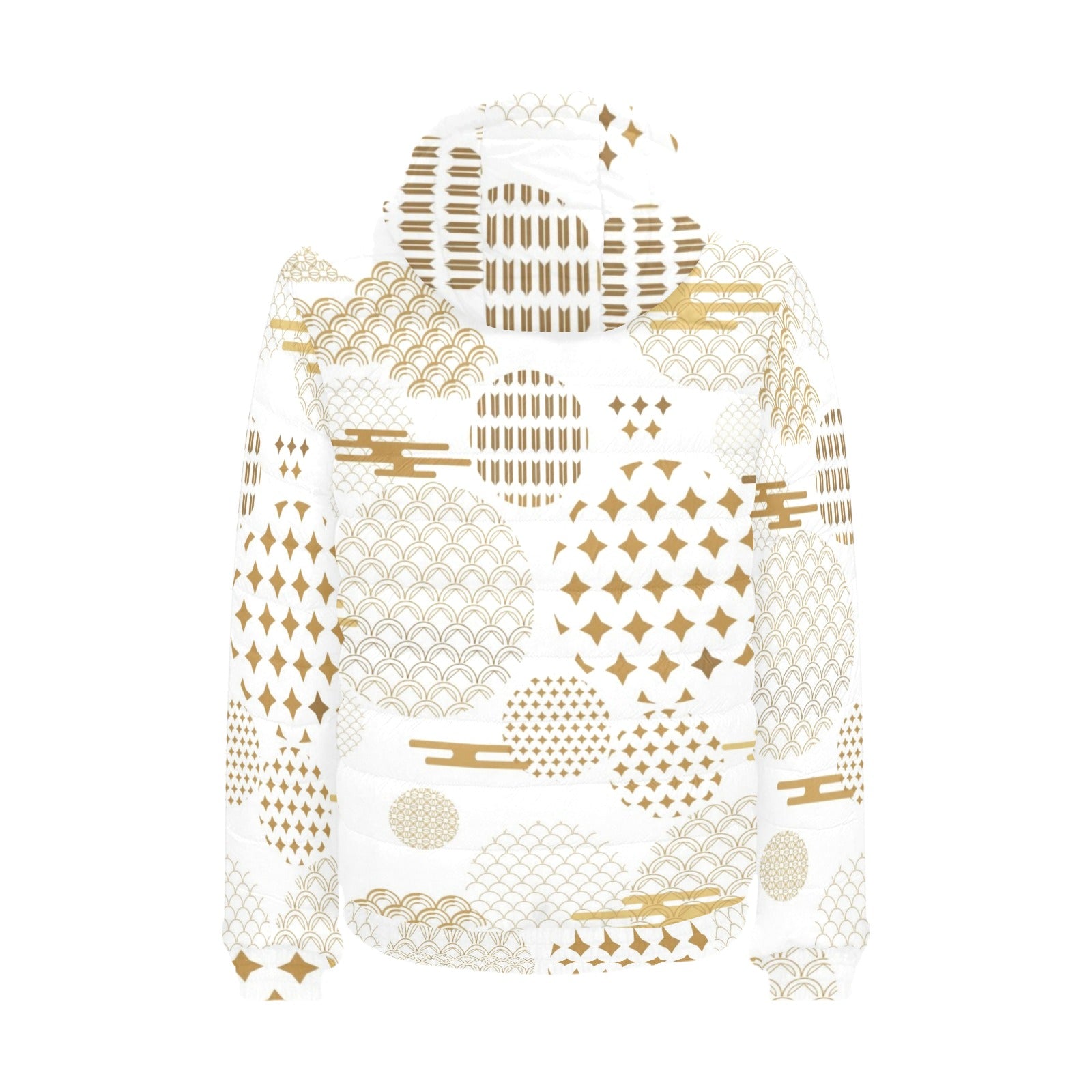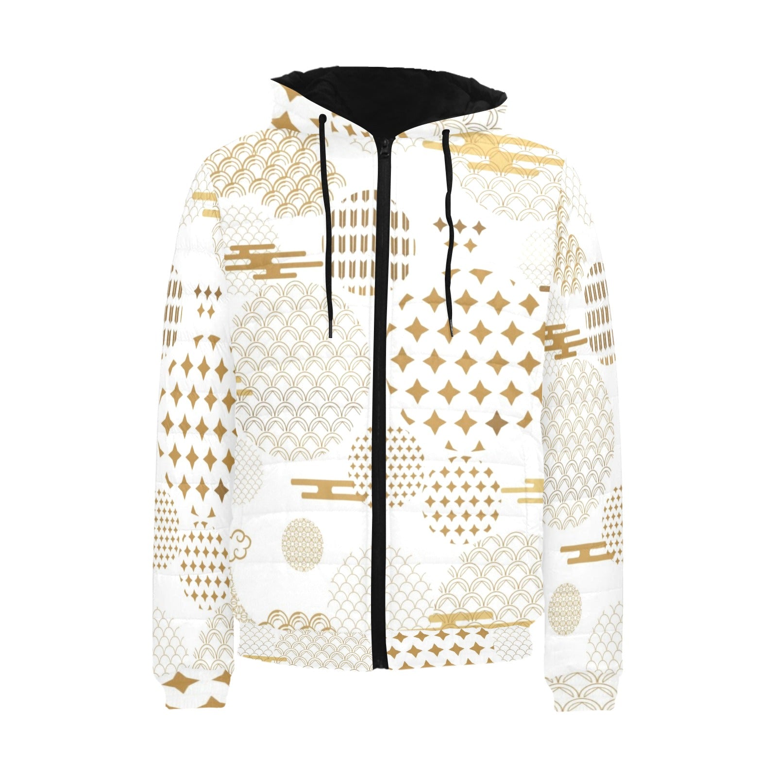 Beautiful gold japanese pattern Men's Padded Hooded Jacket