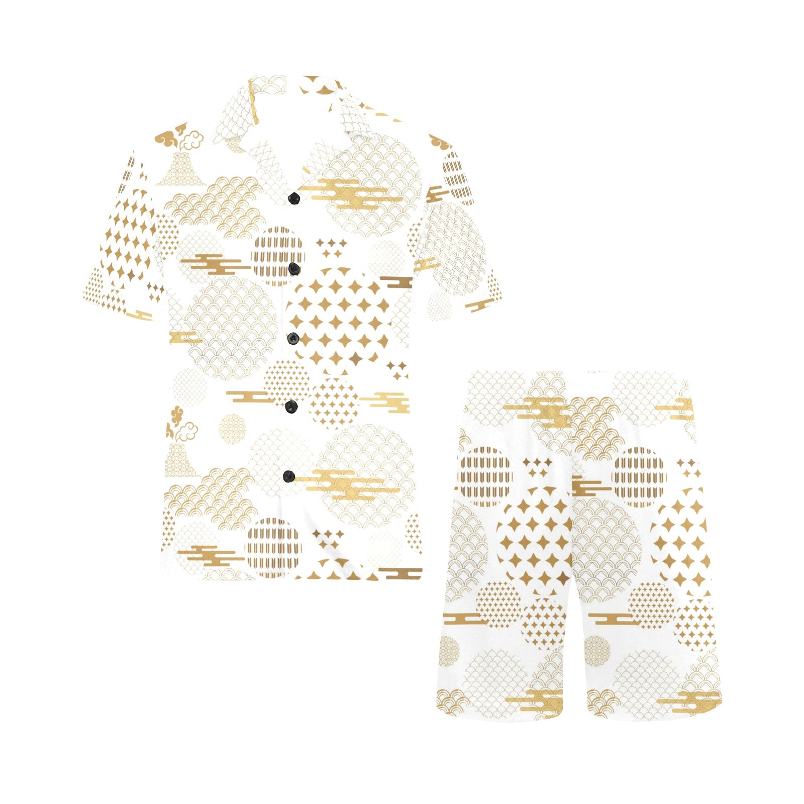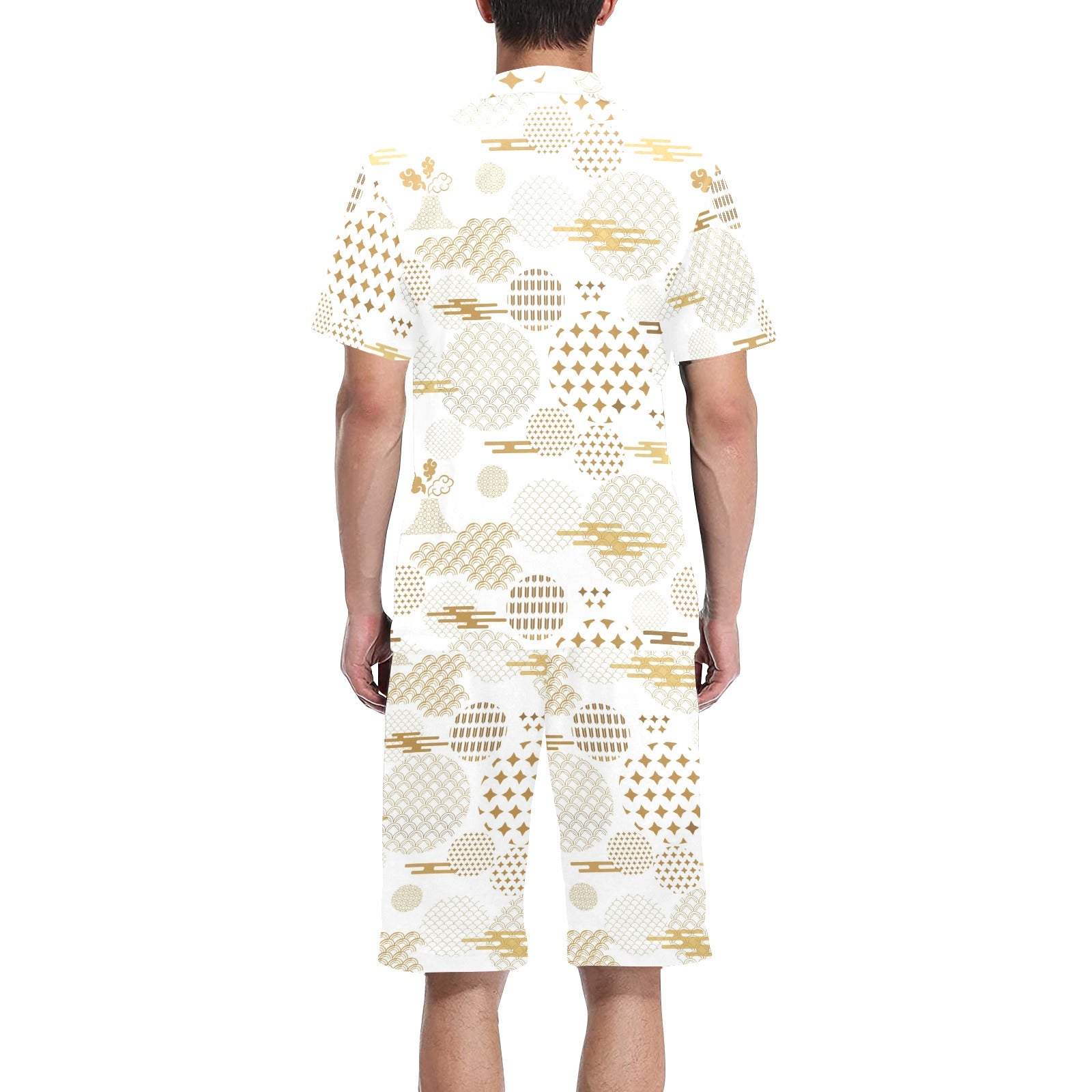 Beautiful gold japanese pattern Men's V-Neck Short Pajama Set