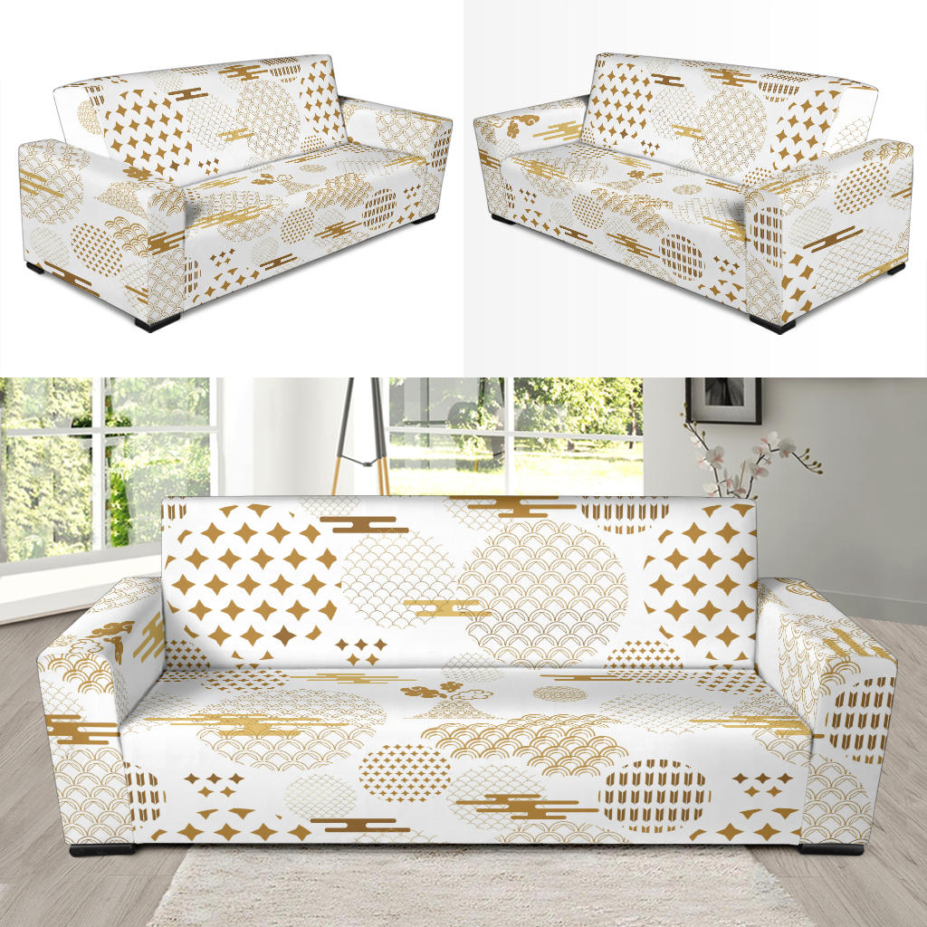 Beautiful Gold Japanese Pattern Sofa Slipcover