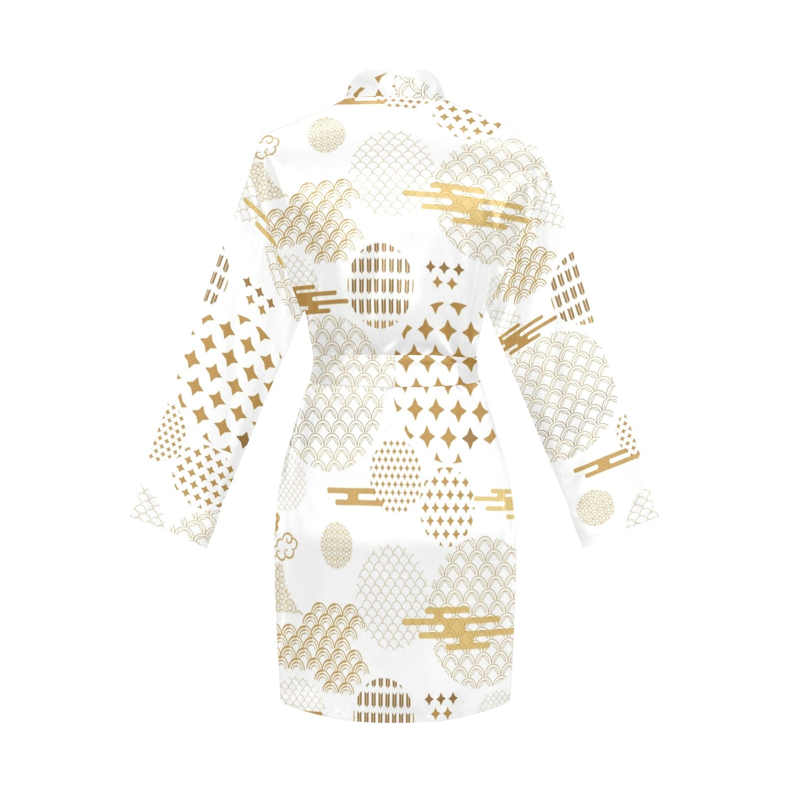 Beautiful gold japanese pattern Women's Long Sleeve Belted Night Robe