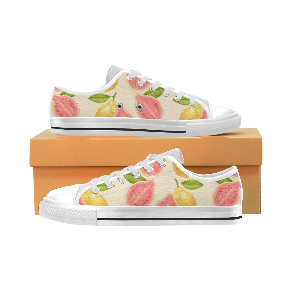 Beautiful guava pattern Men's Low Top Canvas Shoes White