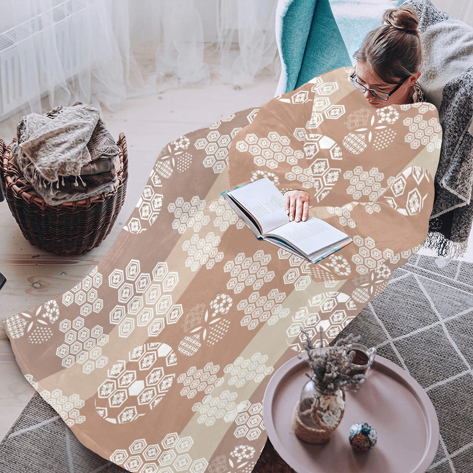 Beautiful hexagon japanese pattern Blanket Robe with Sleeves