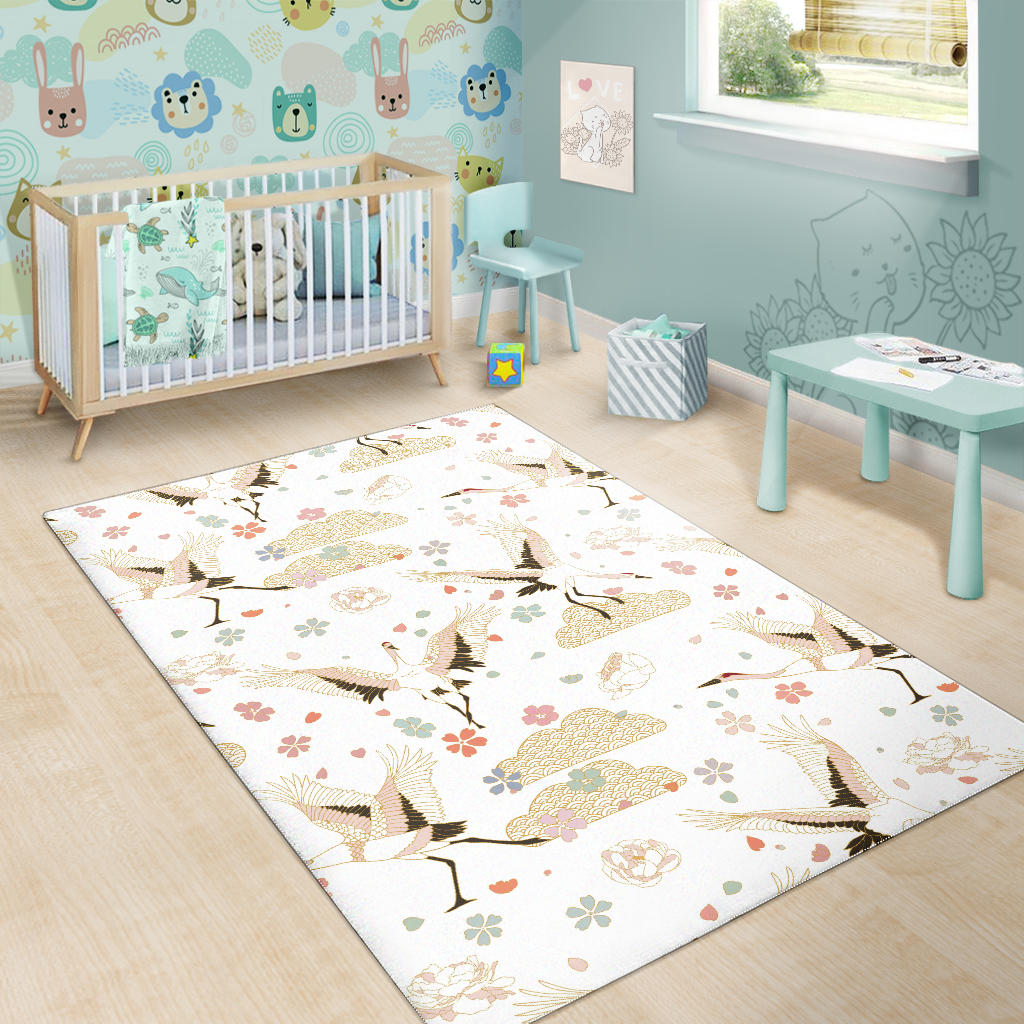 Beautiful Japanese cranes pattern Area Rug is a uniqued design and limited item. It made to order, hand printed, and sewn with love in our factory.