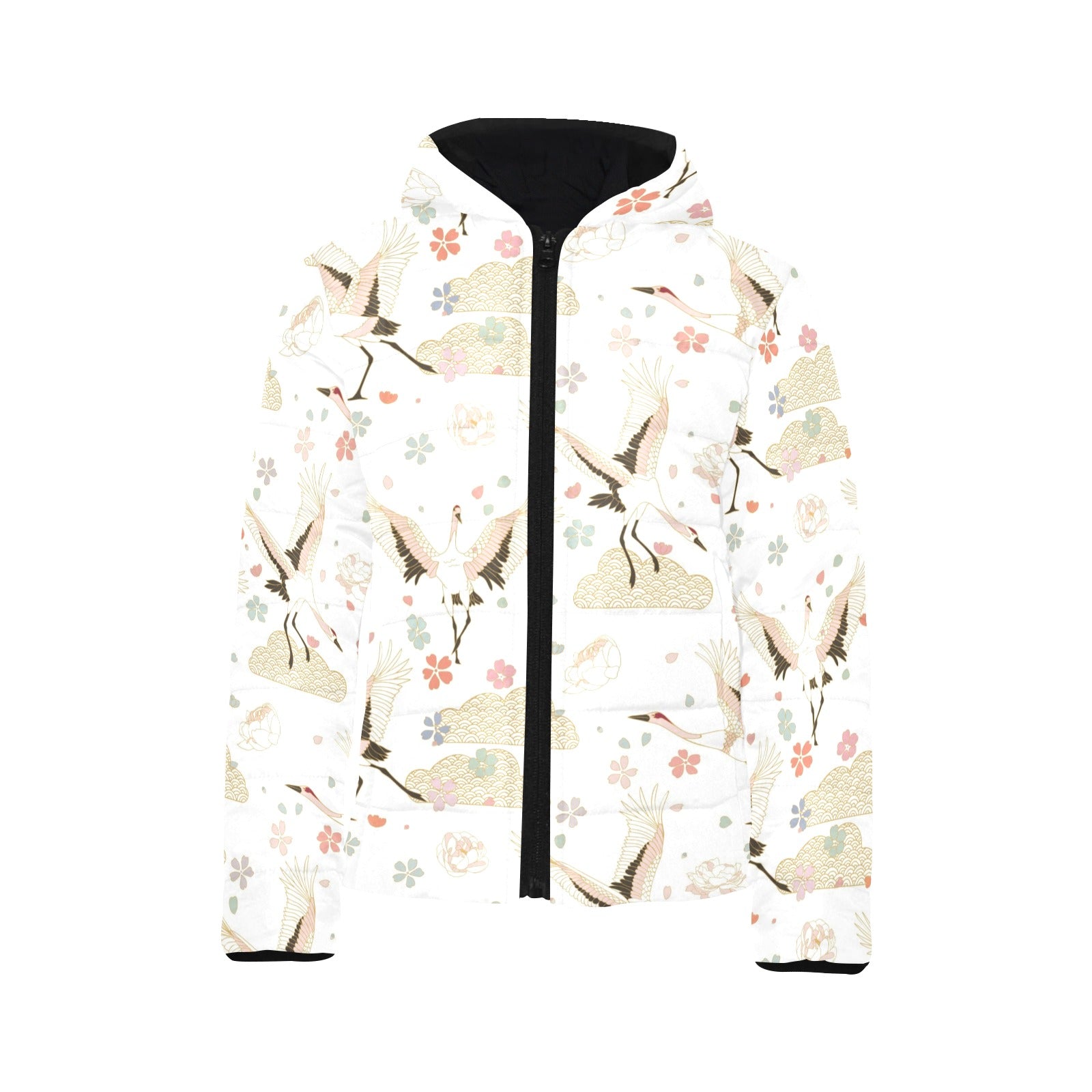 Beautiful Japanese cranes pattern Kids' Boys' Girls' Padded Hooded Jacket