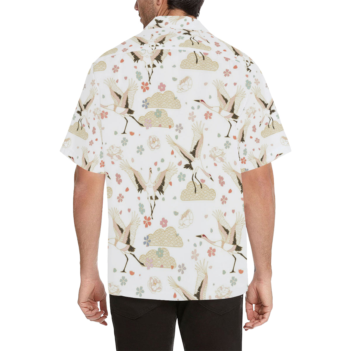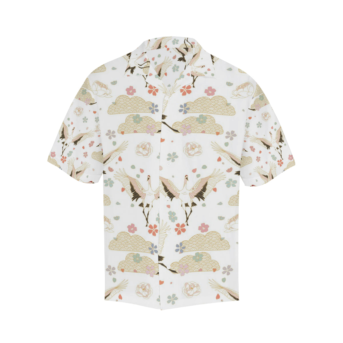 Beautiful Japanese cranes pattern Men's All Over Print Hawaiian Shirt is a uniqued design and limited item. It made to order, hand printed, and sewn with love in our factory.
