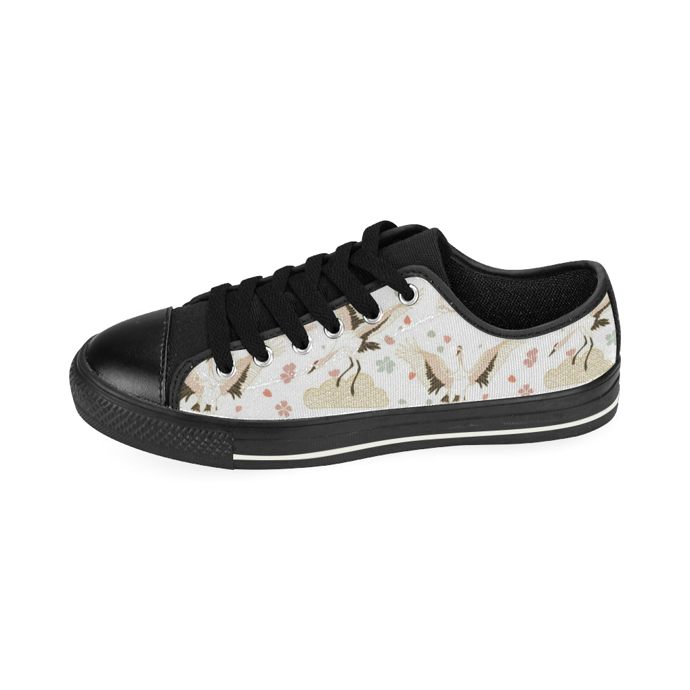 Beautiful Japanese cranes pattern Men's Low Top Canvas Shoes Black