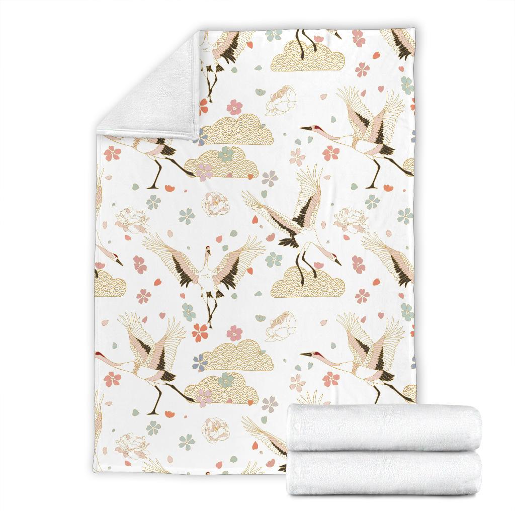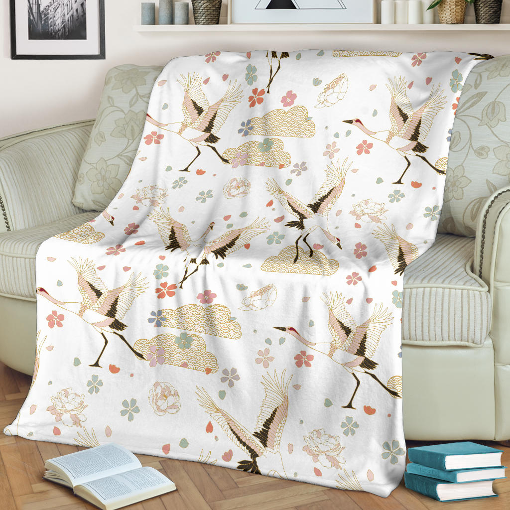 Beautiful Japanese cranes pattern Premium Blanket is a uniqued design and limited item. It made to order, hand printed, and sewn with love in our factory.