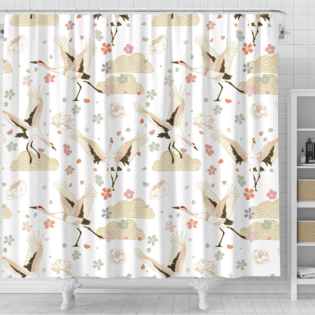 Beautiful Japanese Cranes Pattern Shower Curtain Fulfilled In US