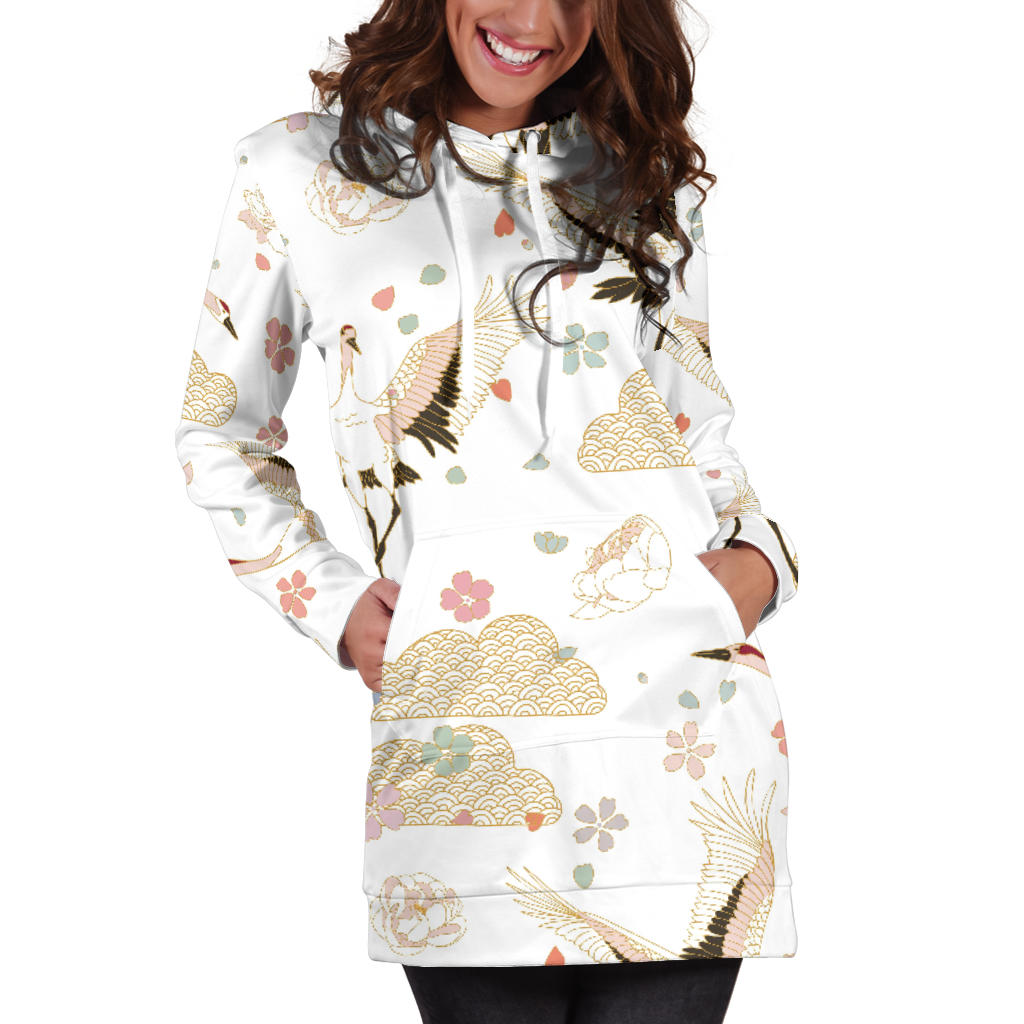 Beautiful Japanese Cranes Pattern Women'S Hoodie Dress