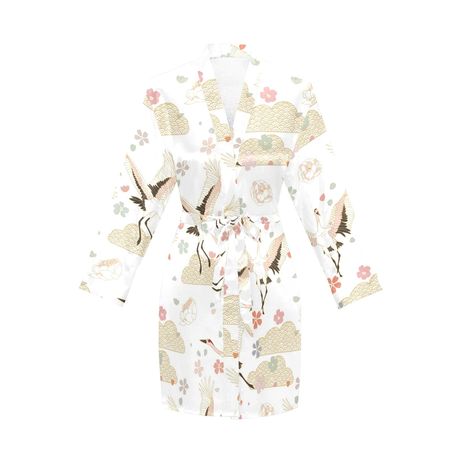Beautiful Japanese cranes pattern Women's Long Sleeve Belted Night Robe