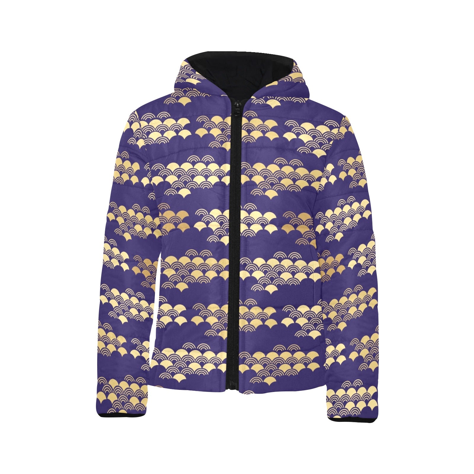 Beautiful japanese fan pattern Kids' Boys' Girls' Padded Hooded Jacket