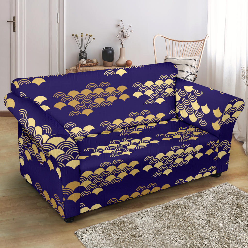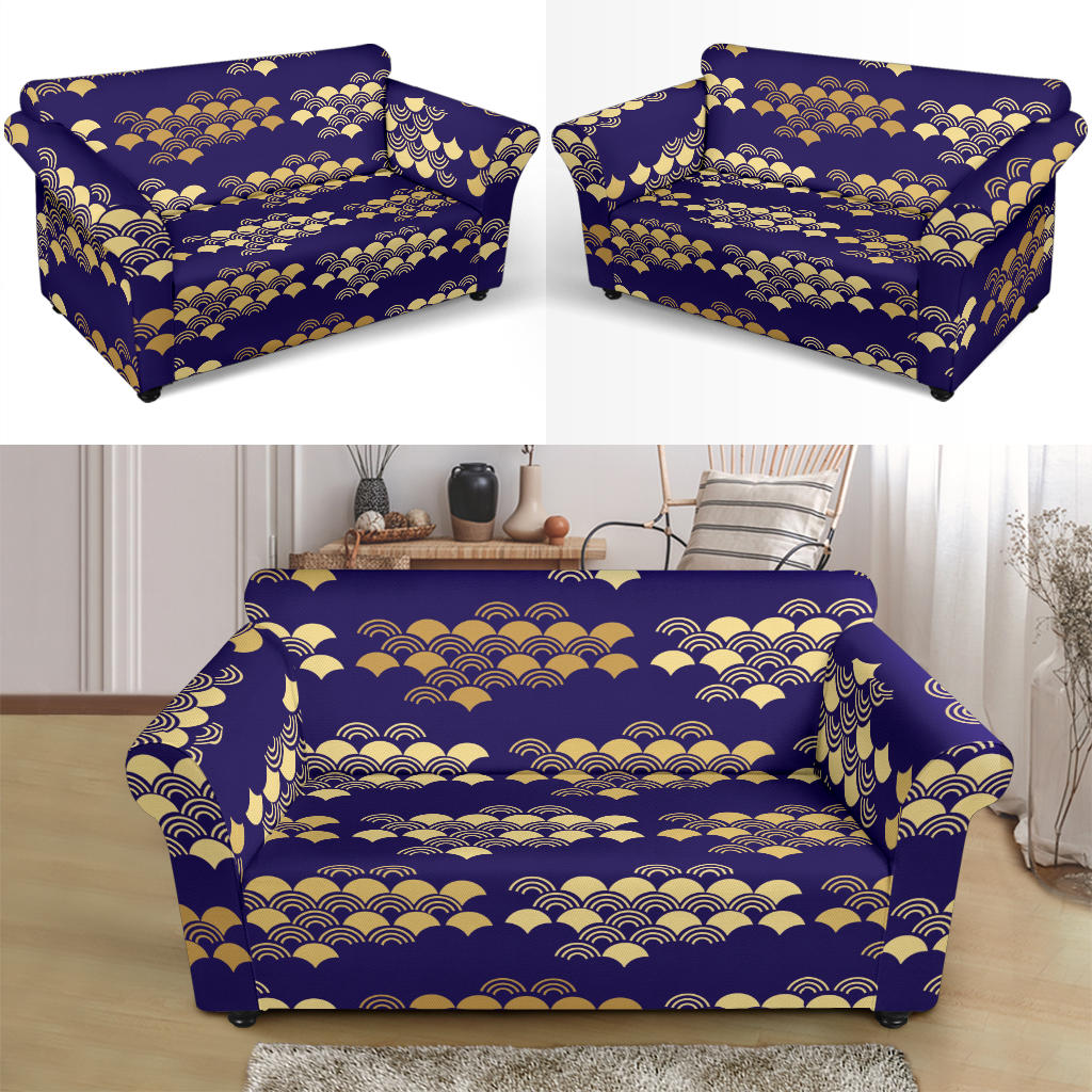 Beautiful Japanese Fan Pattern Loveseat Couch Slipcover
