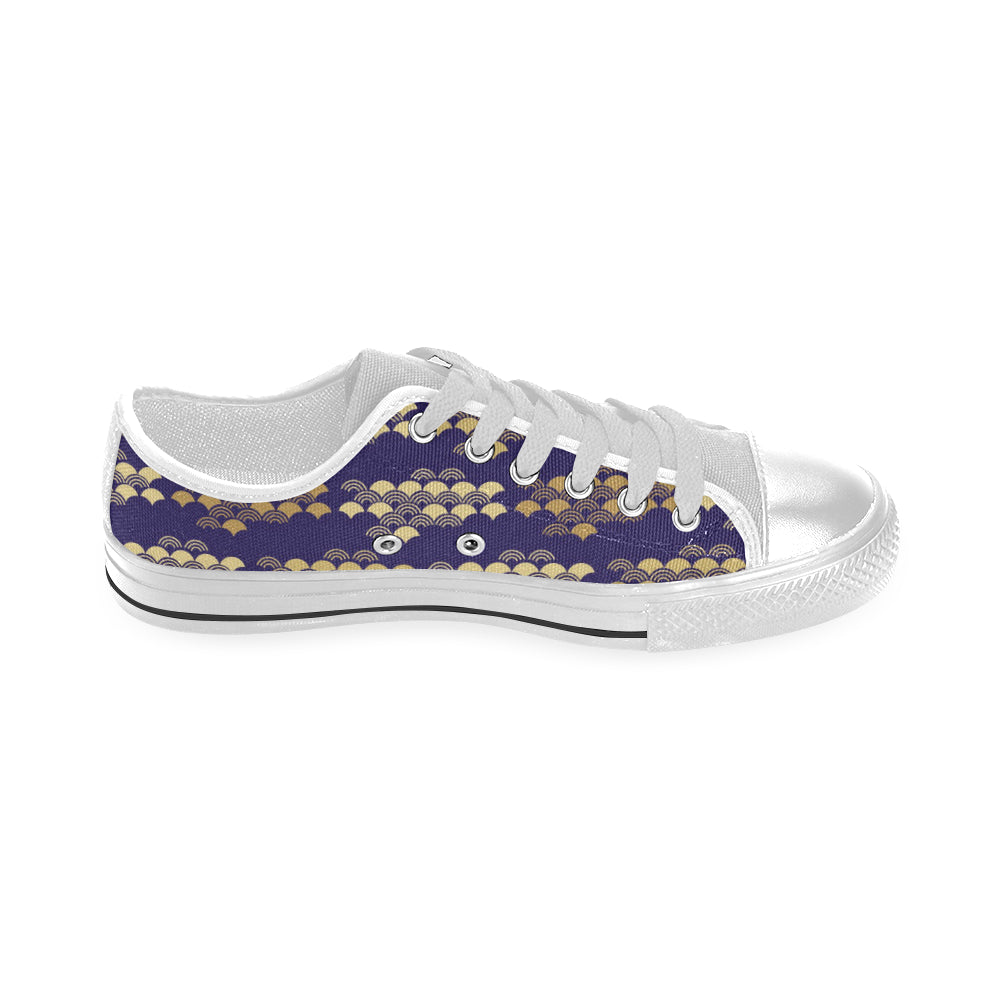Beautiful japanese fan pattern Men's Low Top Canvas Shoes White