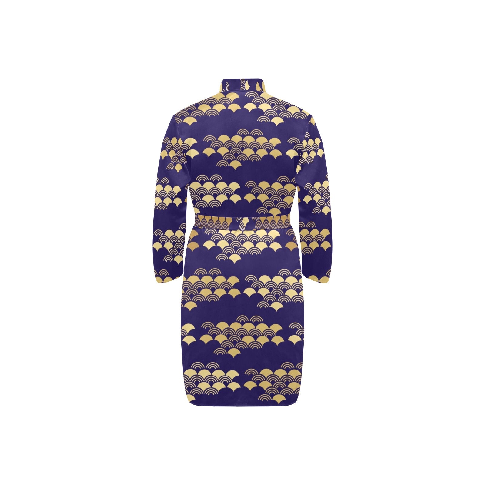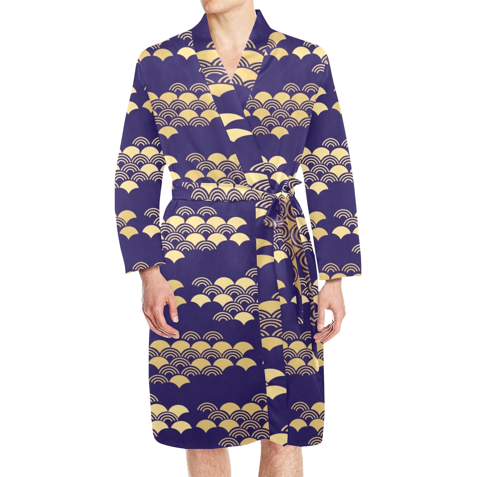 Beautiful japanese fan pattern Men's Long Sleeve Belted Night Robe