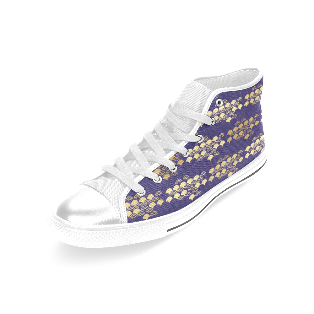 Beautiful japanese fan pattern Women's High Top Canvas Shoes White