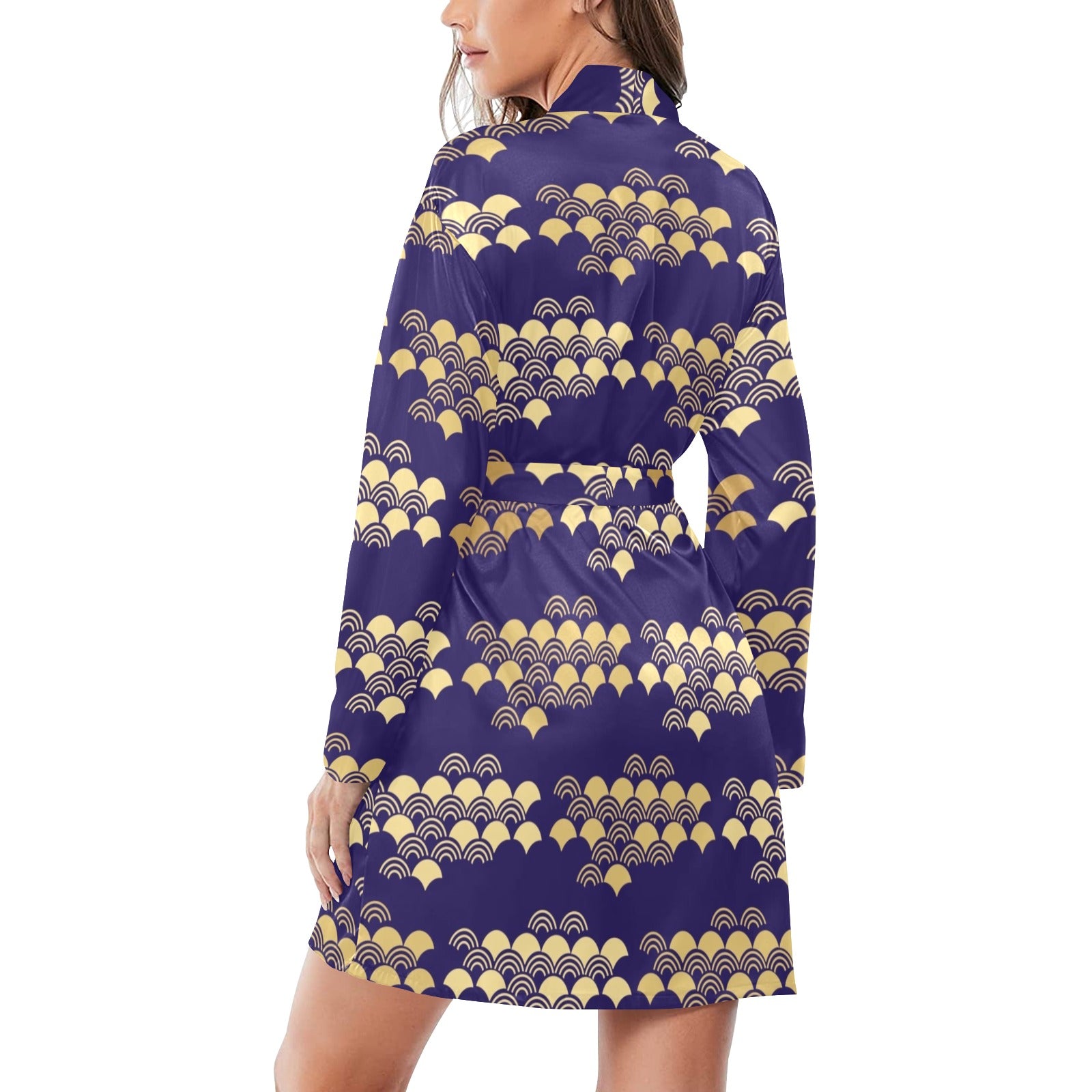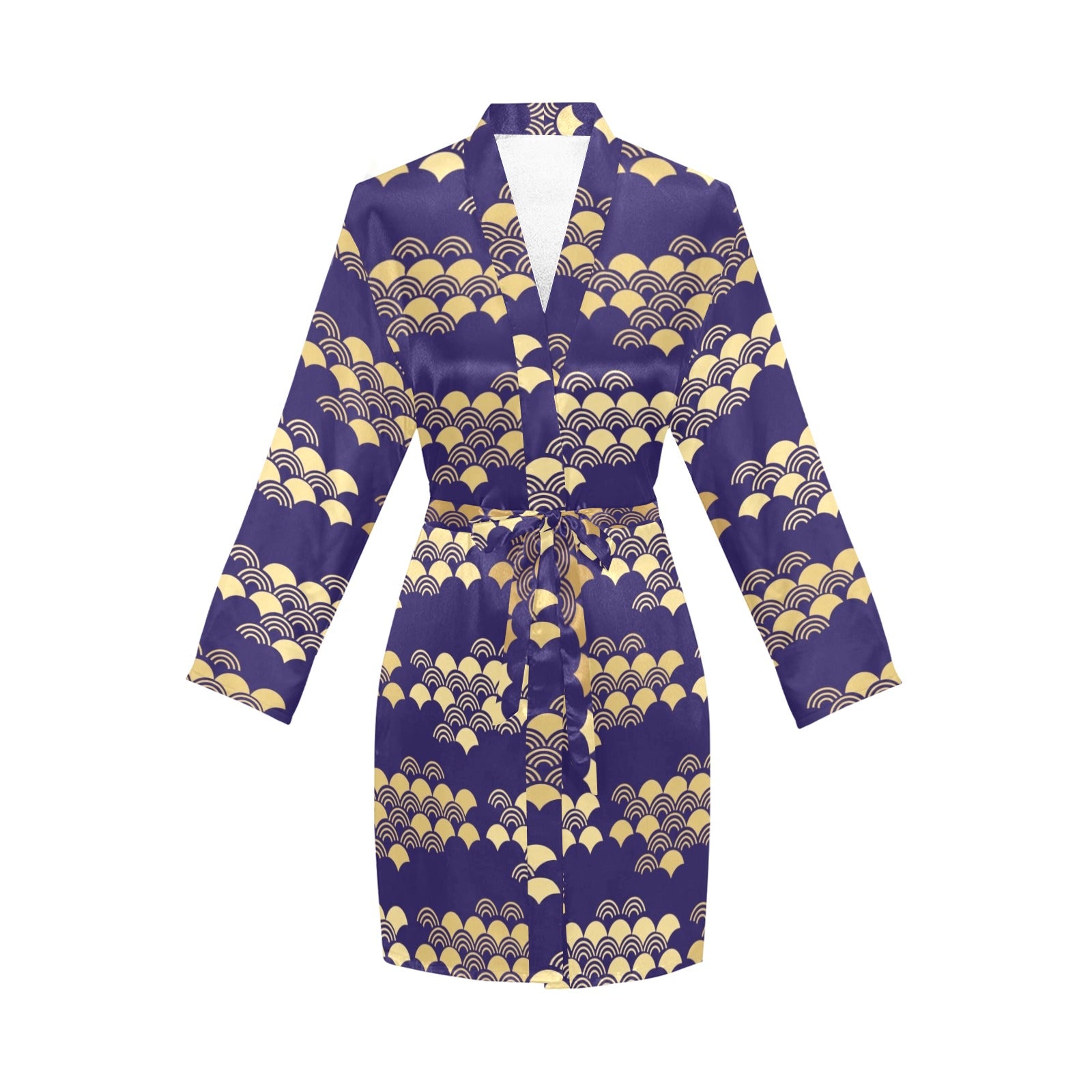 Beautiful japanese fan pattern Women's Long Sleeve Belted Night Robe