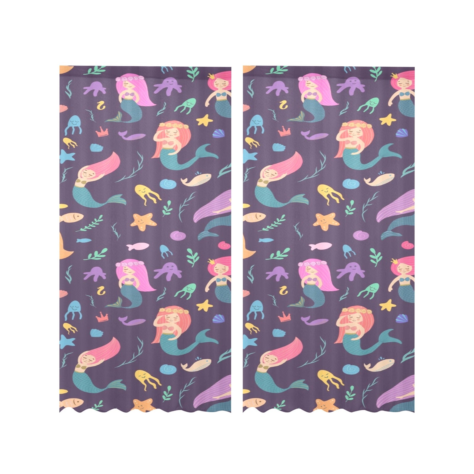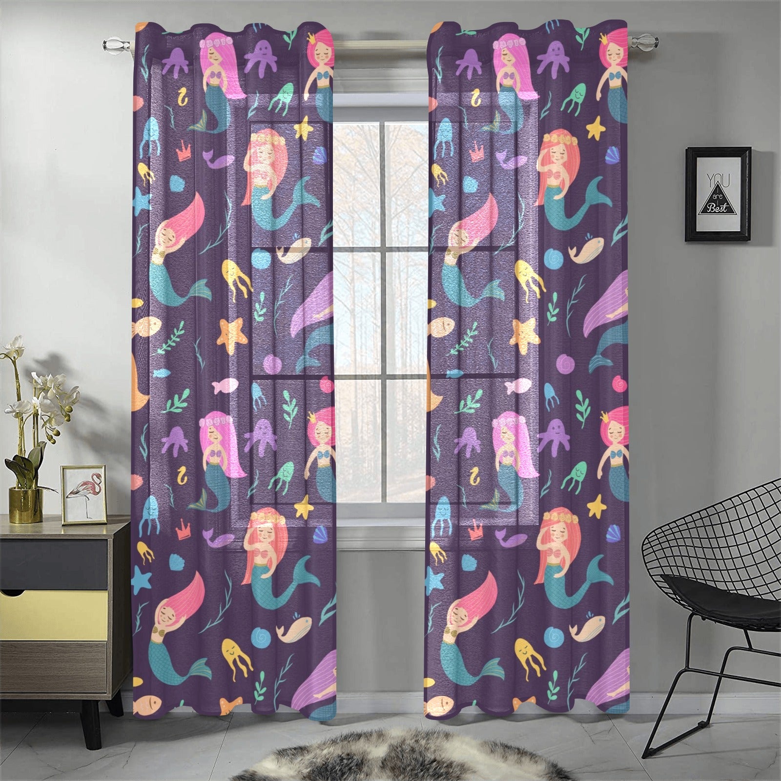 beautiful mermaid Fish jellyfish algae other marin Gauze Curtain