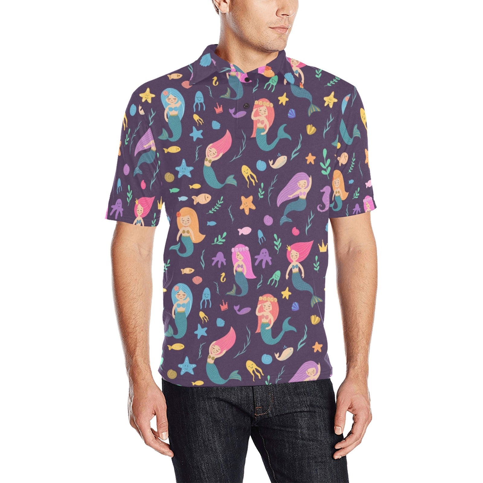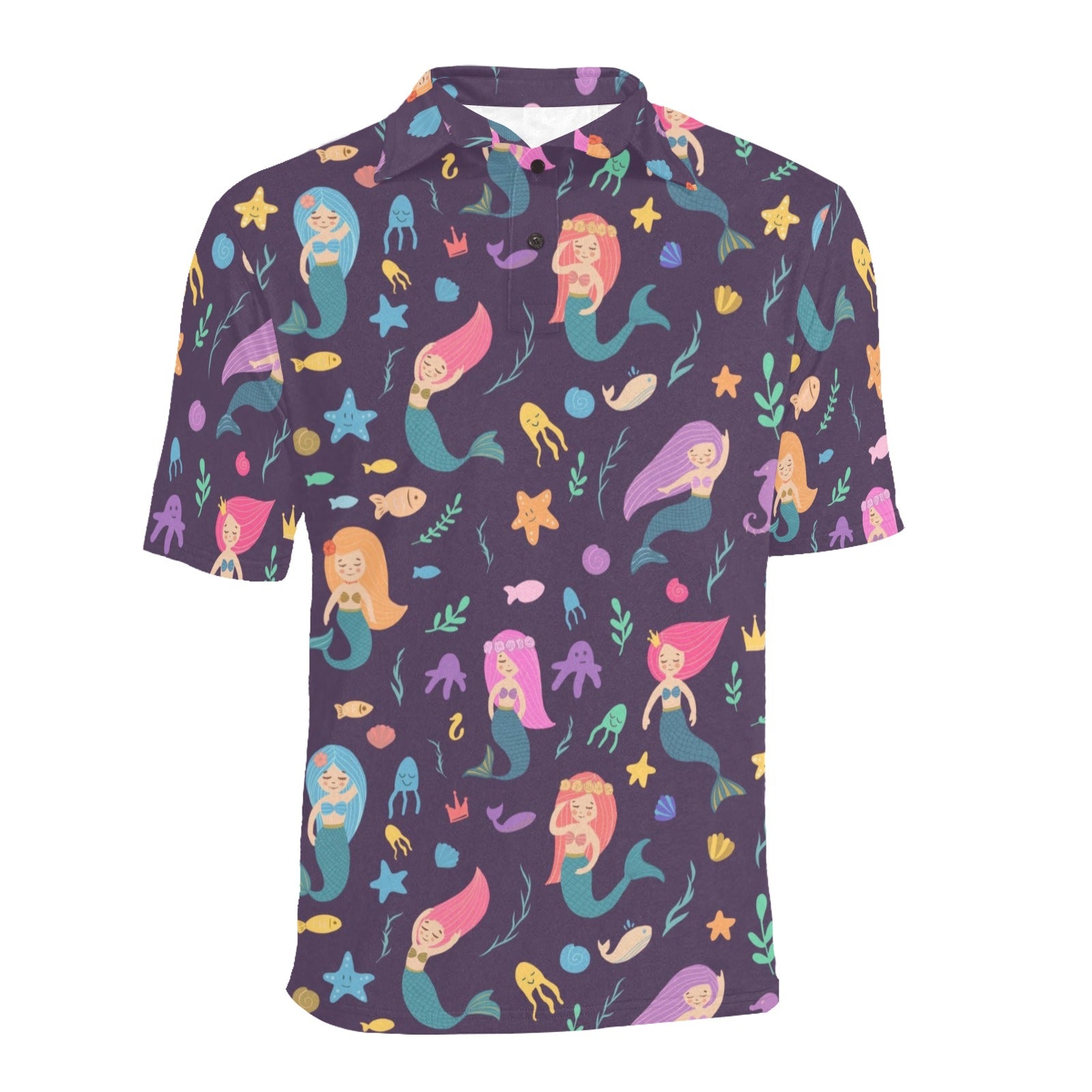 beautiful mermaid Fish jellyfish algae other marin Men's All Over Print Polo Shirt