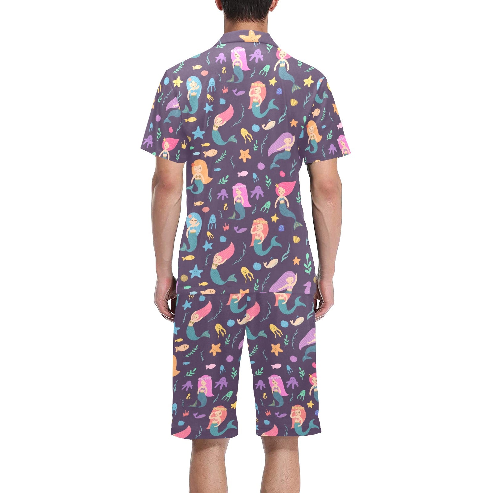 beautiful mermaid Fish jellyfish algae other marin Men's V-Neck Short Pajama Set