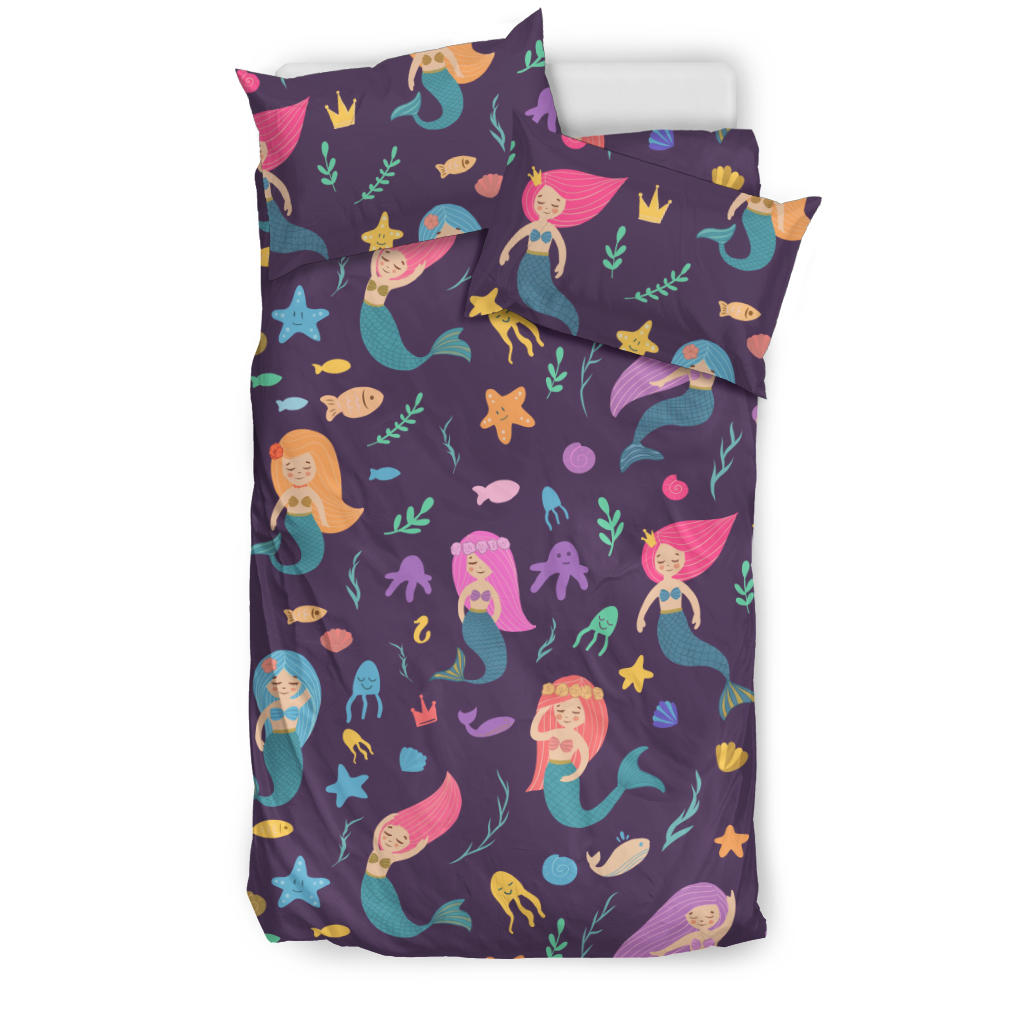 Beautiful Mermaid Fish Jellyfish Algae Other Marine World Bedding Set
