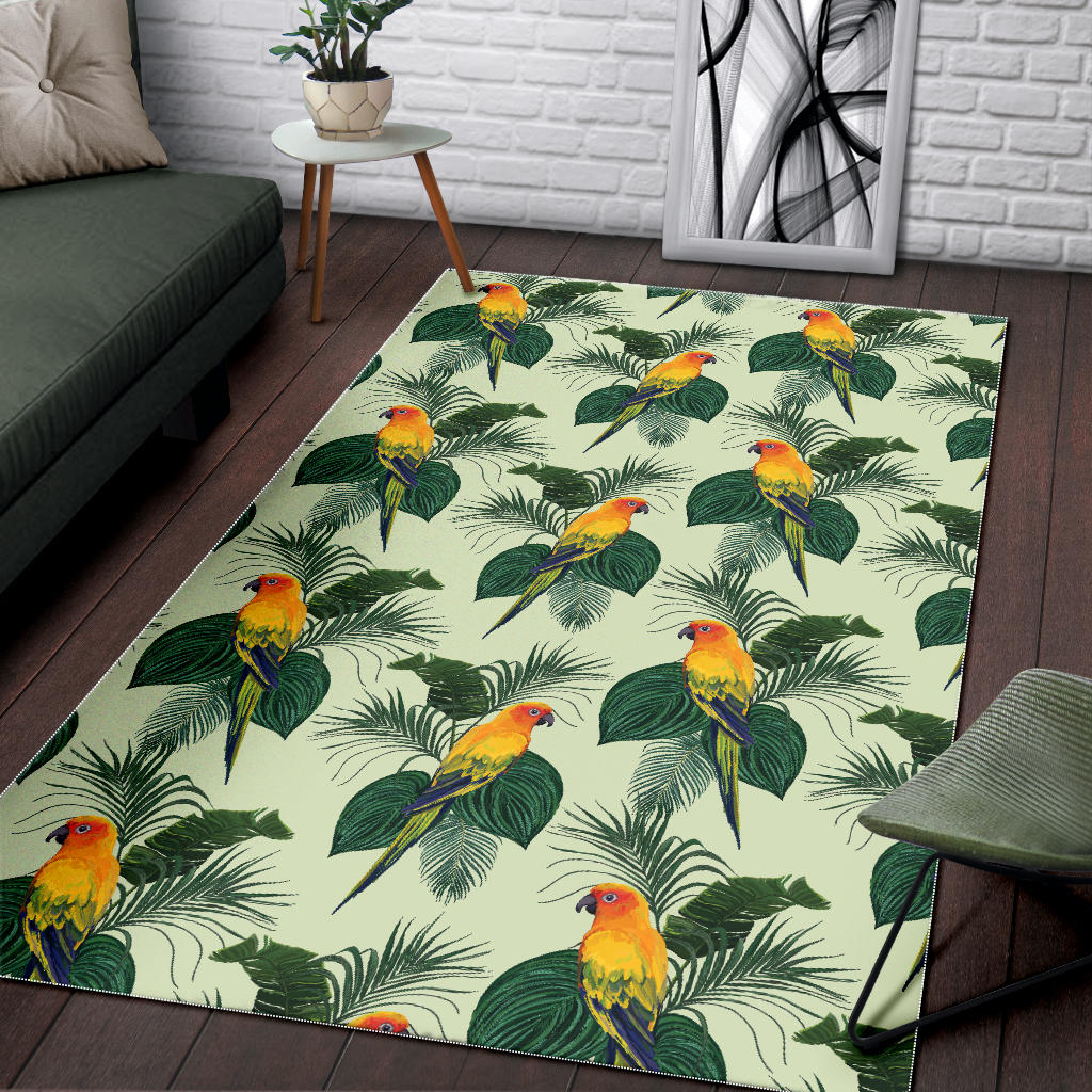 Beautiful parrot palm leaves pattern Area Rug is a uniqued design and limited item. It made to order, hand printed, and sewn with love in our factory.