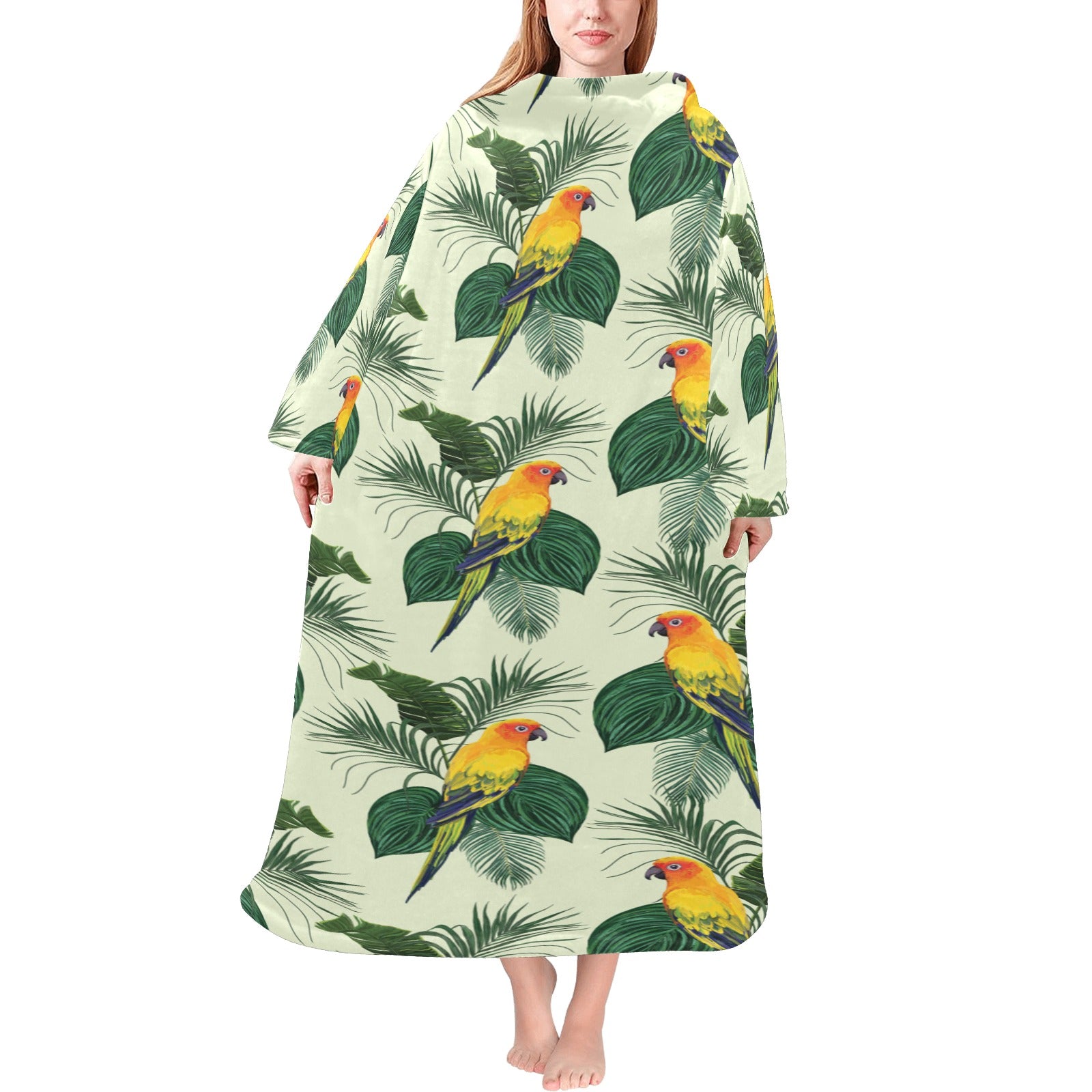 Beautiful parrot palm leaves pattern Blanket Robe with Sleeves