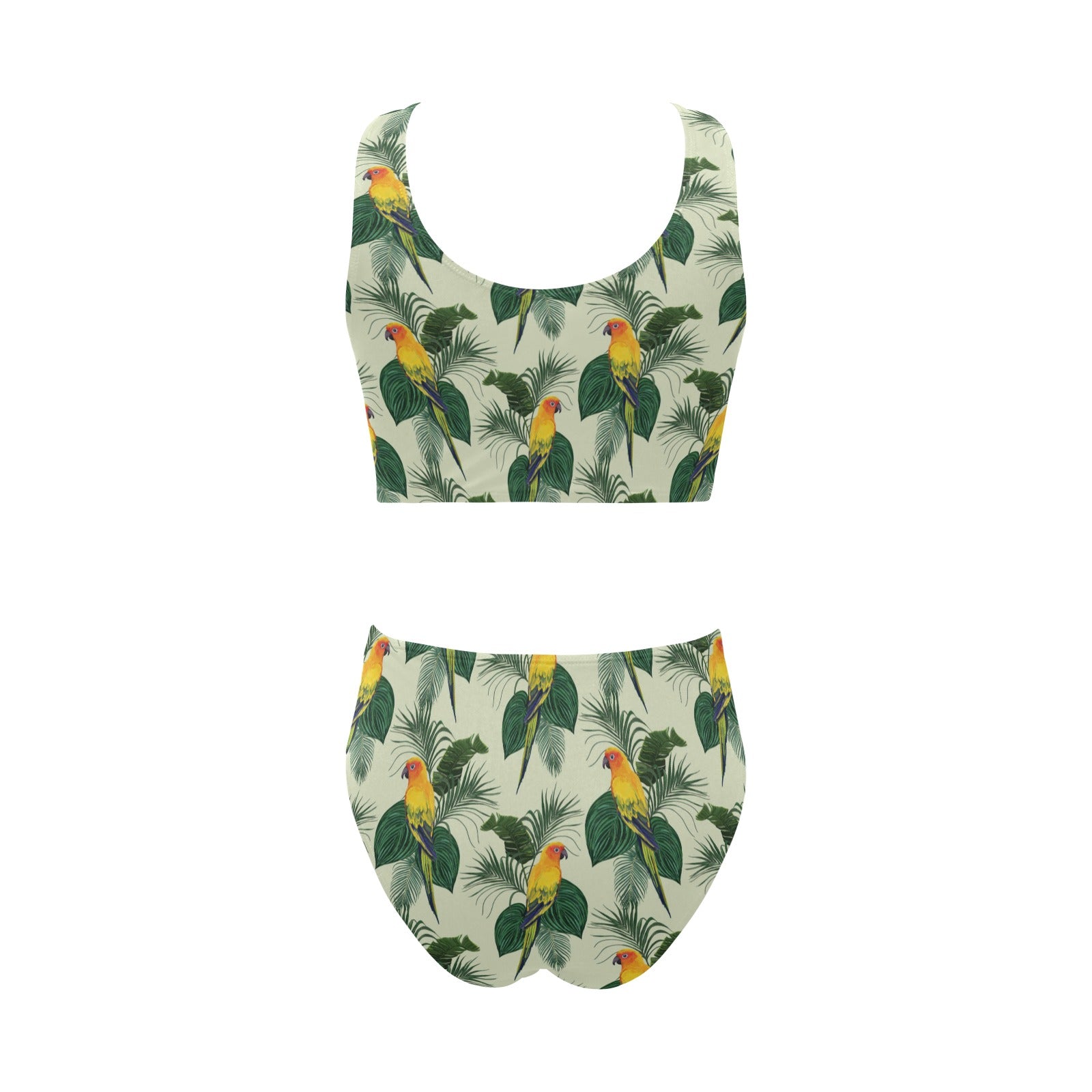 Beautiful parrot palm leaves pattern Chest Bowknot High Waisted Bikini Swimsuit