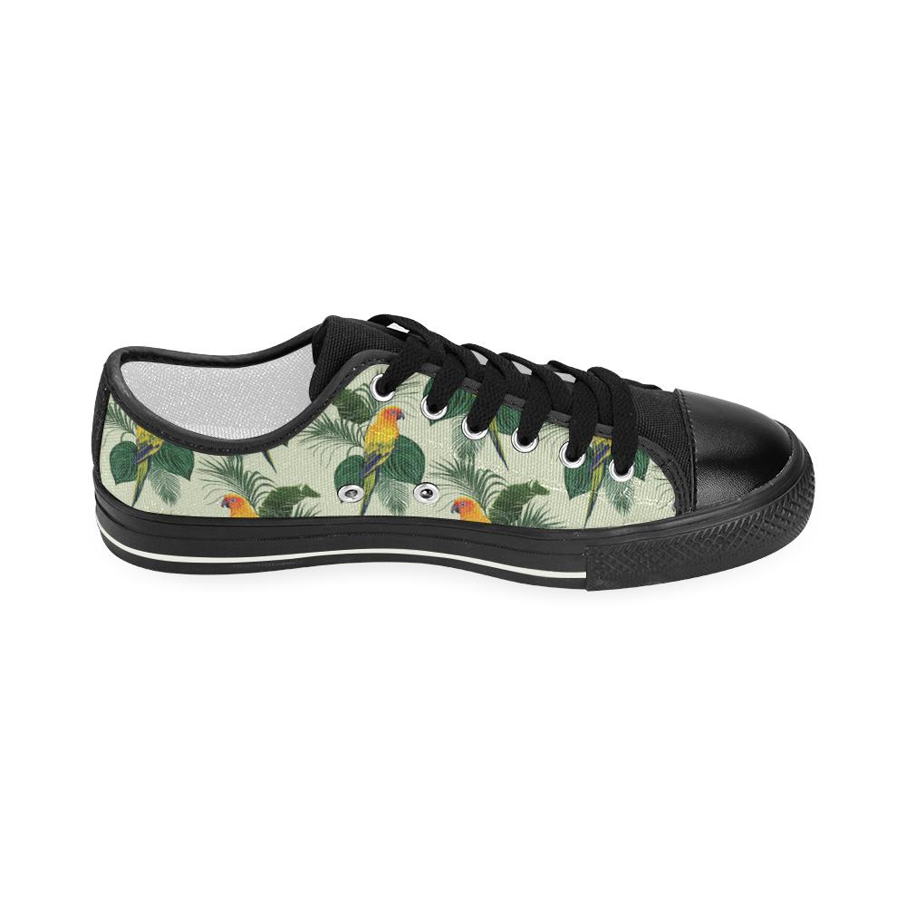 Beautiful parrot palm leaves pattern Kids' Boys' Girls' Low Top Canvas Shoes Black