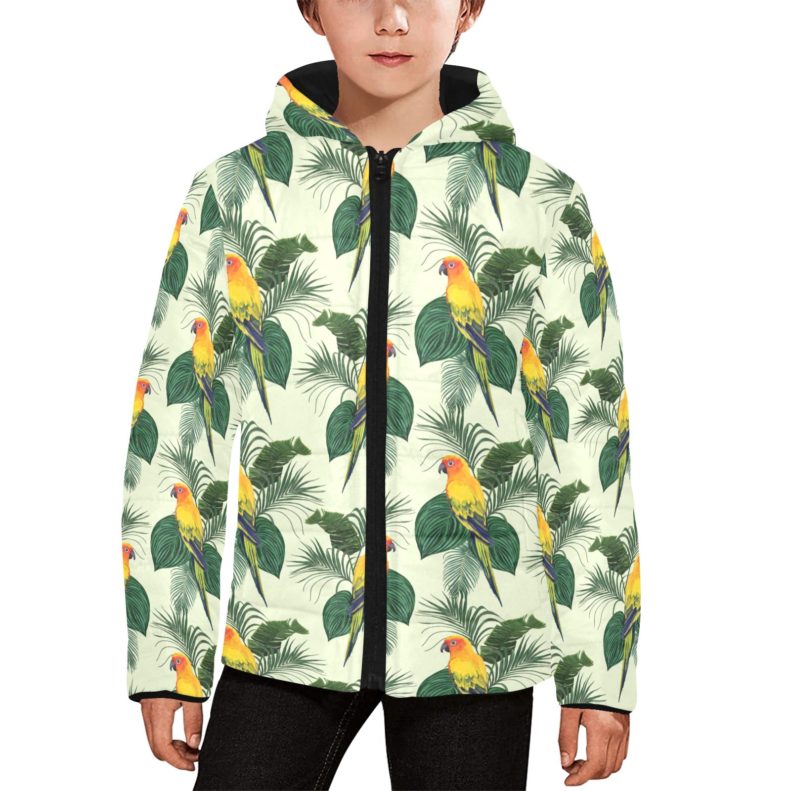 Beautiful parrot palm leaves pattern Kids' Boys' Girls' Padded Hooded Jacket