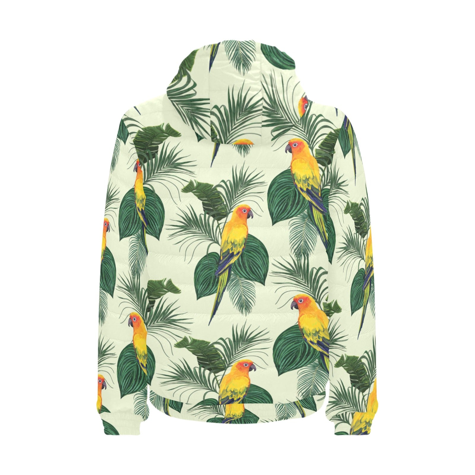 Beautiful parrot palm leaves pattern Men's Padded Hooded Jacket