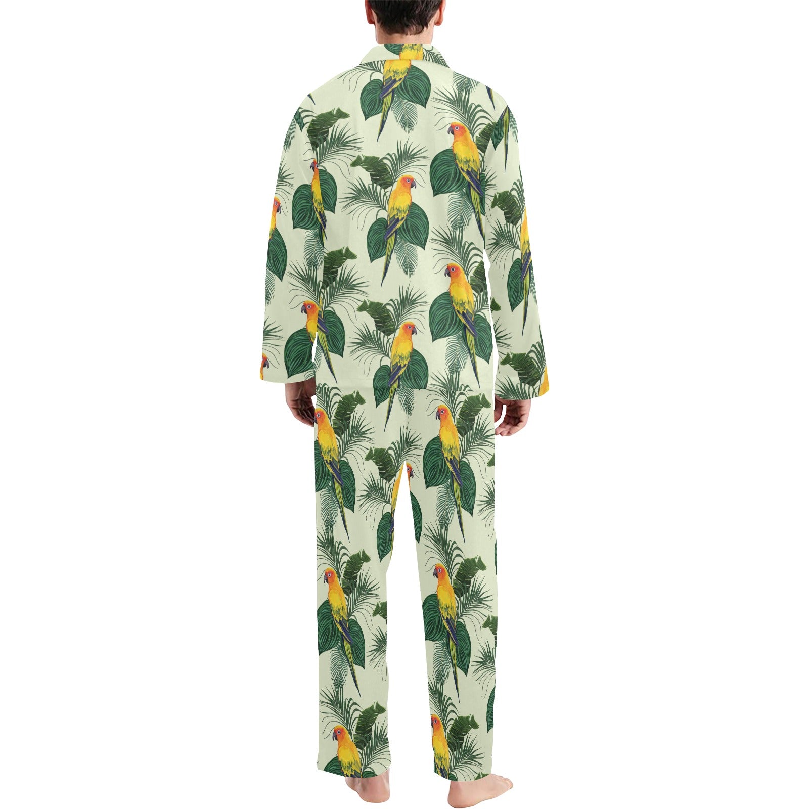 Beautiful parrot palm leaves pattern Men's Long Pajama Set