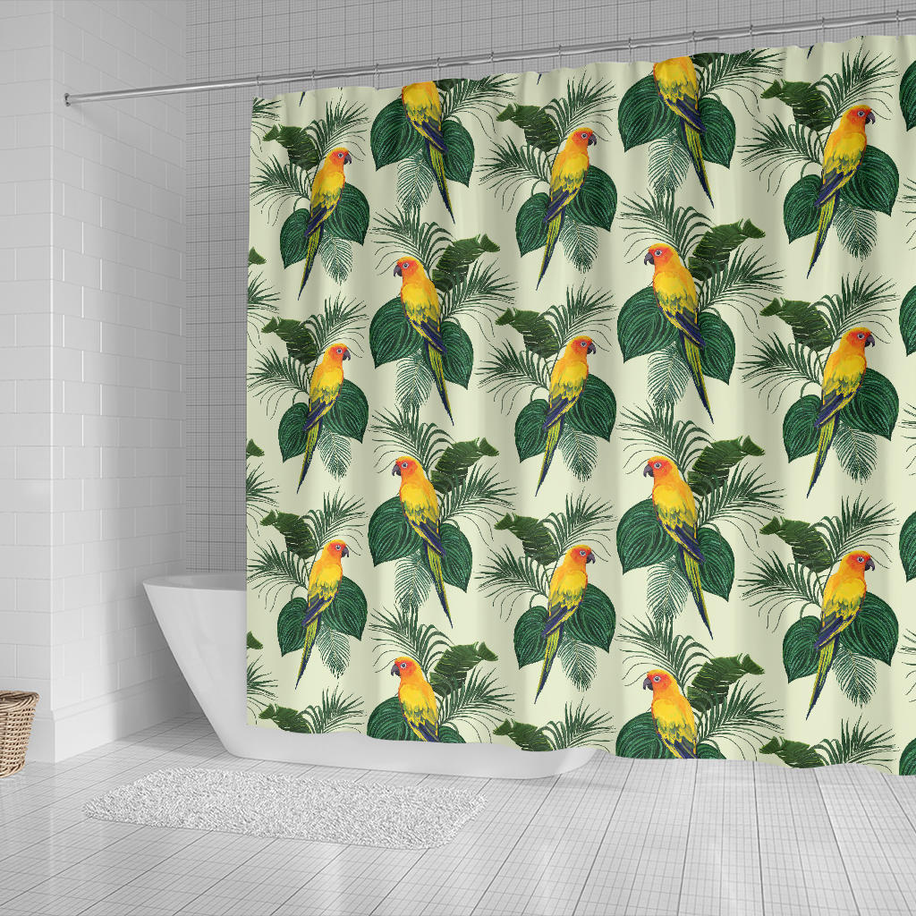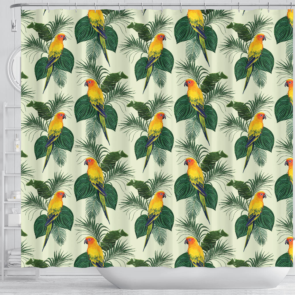 Beautiful Parrot Palm Leaves Pattern Shower Curtain Fulfilled In US