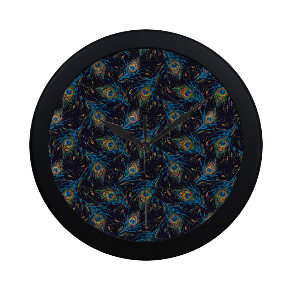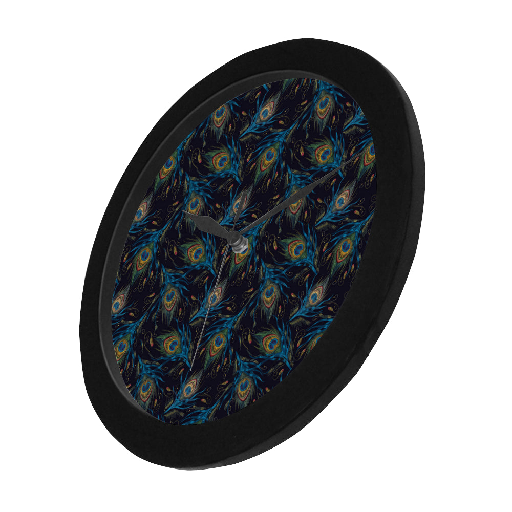 Beautiful peacock feather pattern Elegant Black Wall Clock