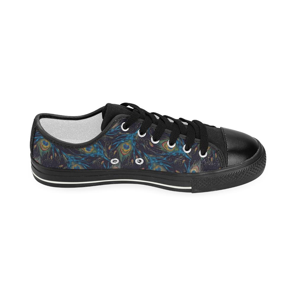Beautiful peacock feather pattern Kids' Boys' Girls' Low Top Canvas Shoes Black