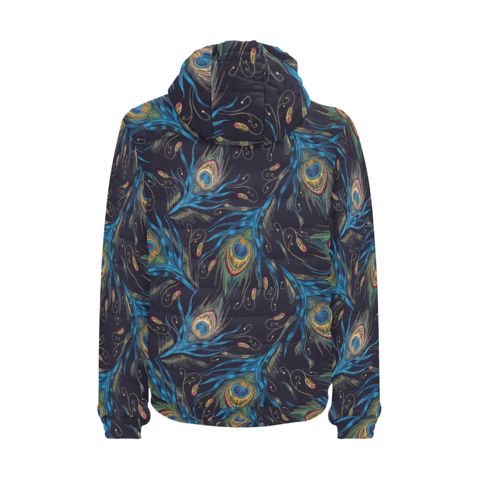 Beautiful peacock feather pattern Men's Padded Hooded Jacket