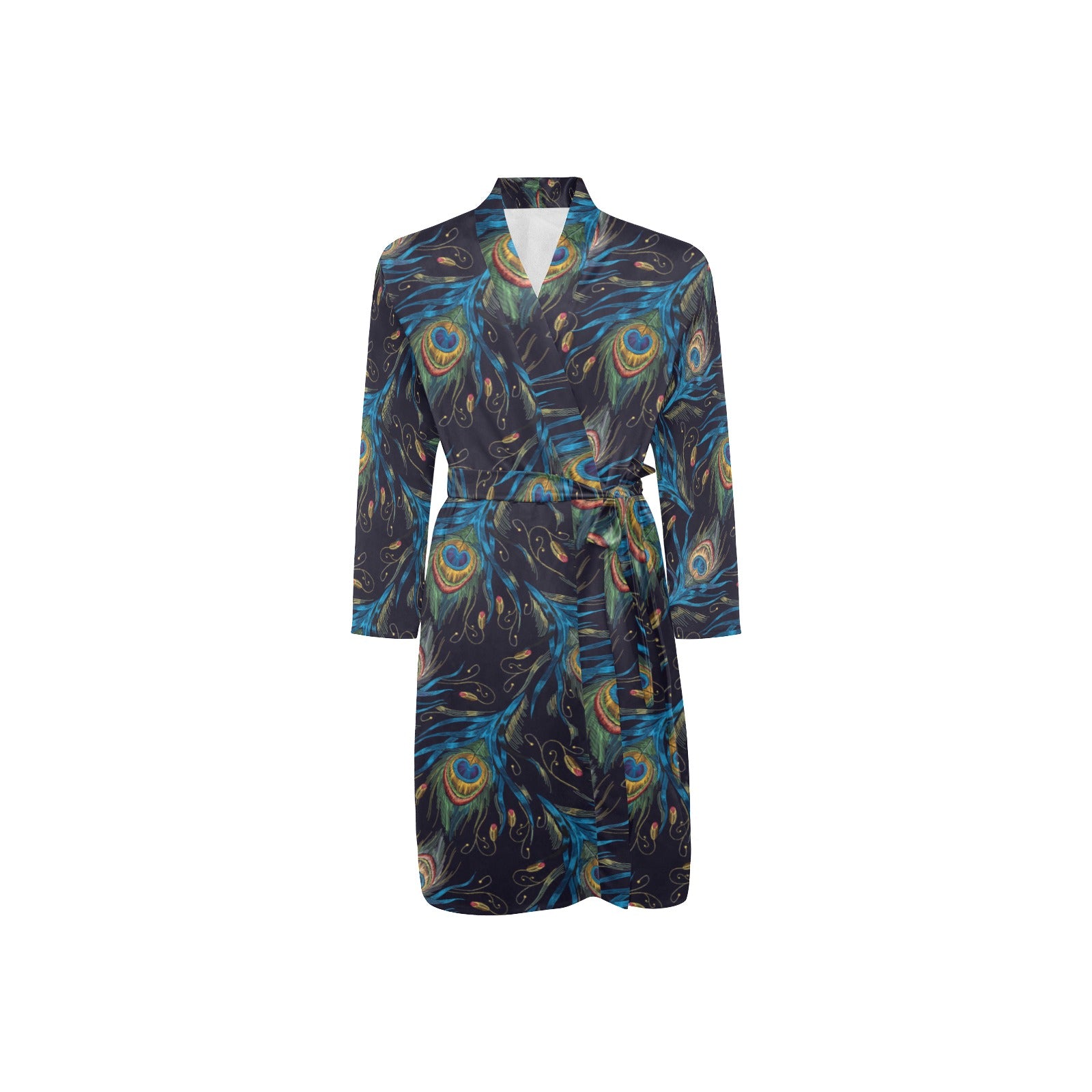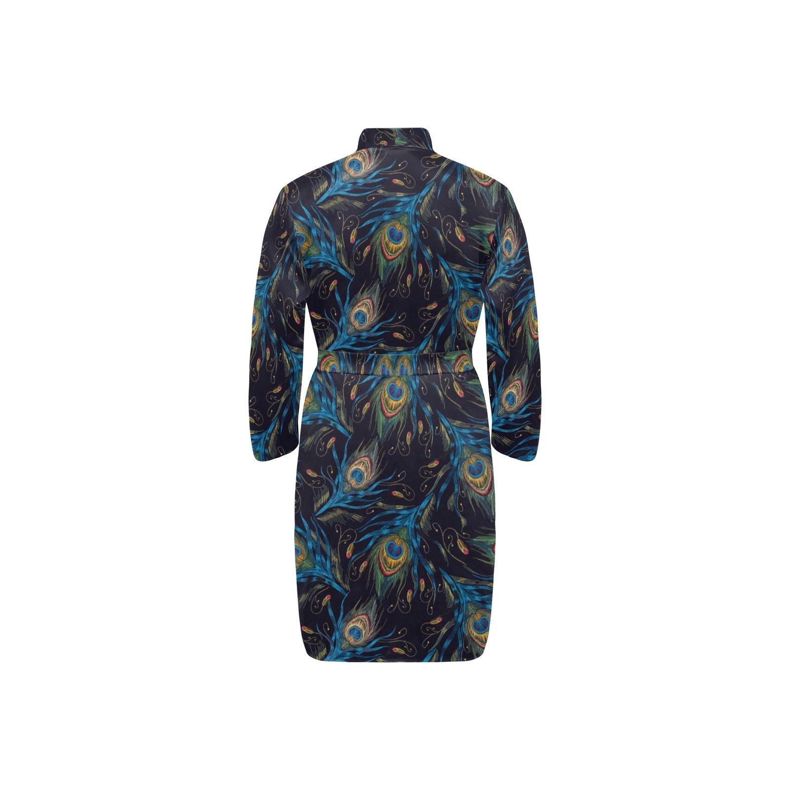 Beautiful peacock feather pattern Men's Long Sleeve Belted Night Robe