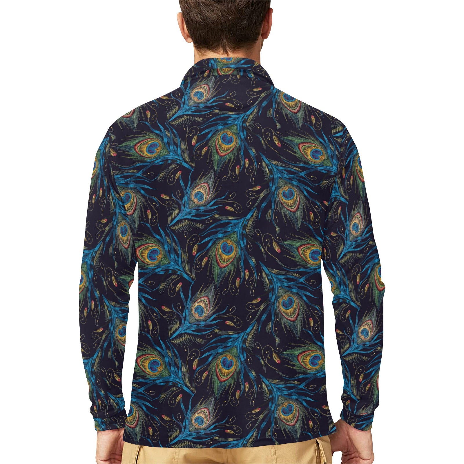 Beautiful peacock feather pattern Men's Long Sleeve Polo Shirt