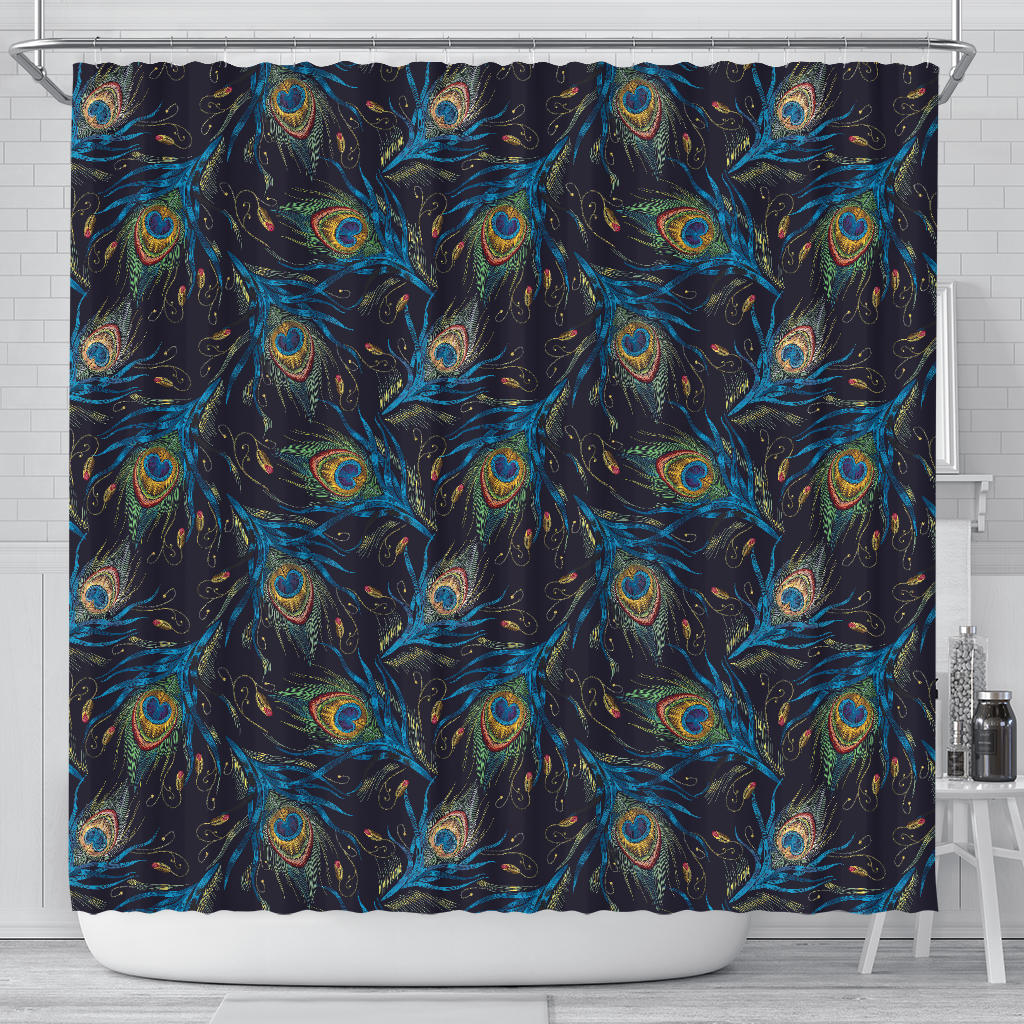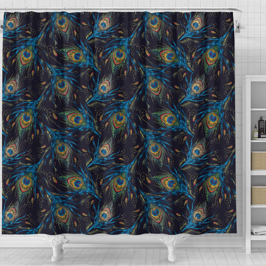 Beautiful Peacock Feather Pattern Shower Curtain Fulfilled In US