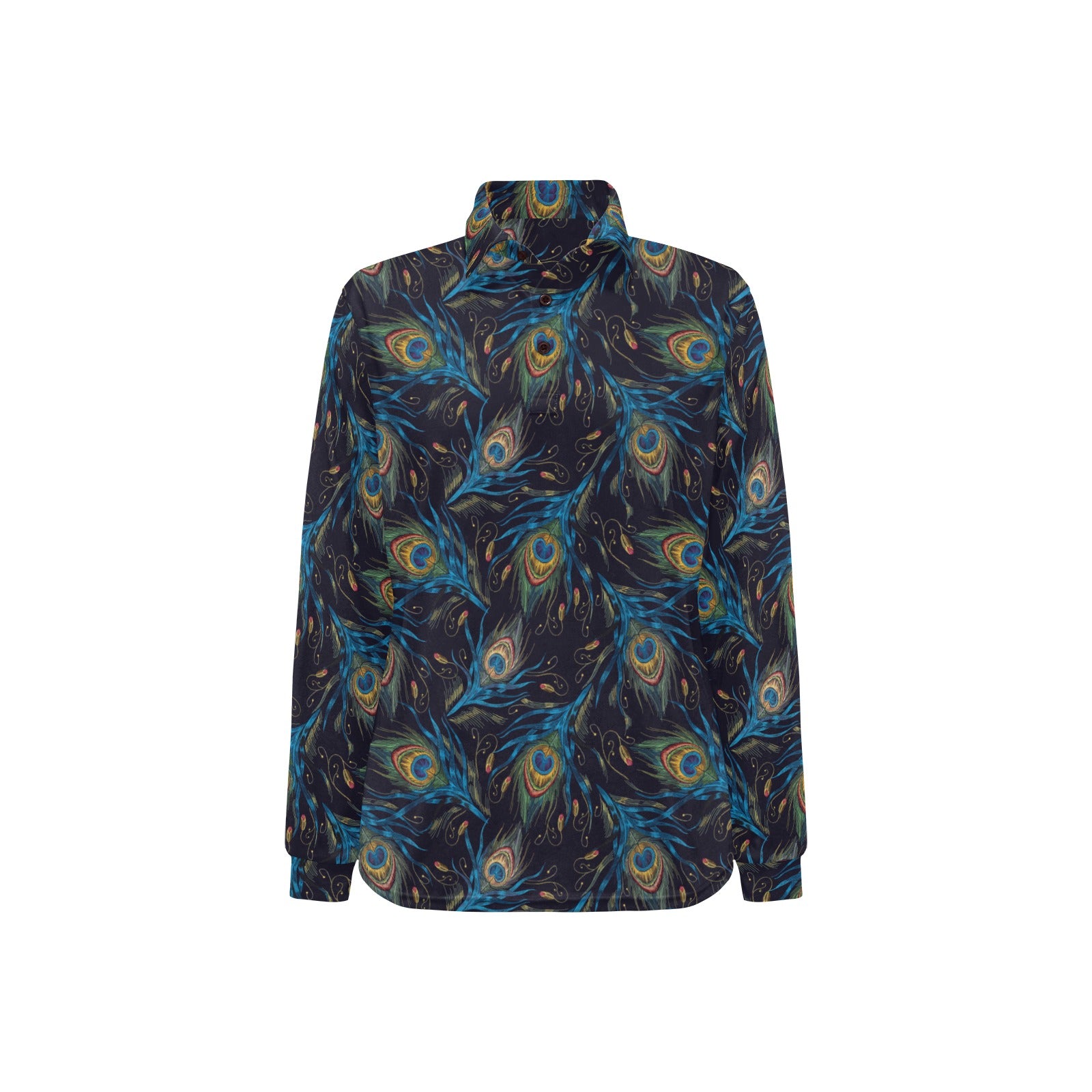 Beautiful peacock feather pattern Women's Long Sleeve Polo Shirt