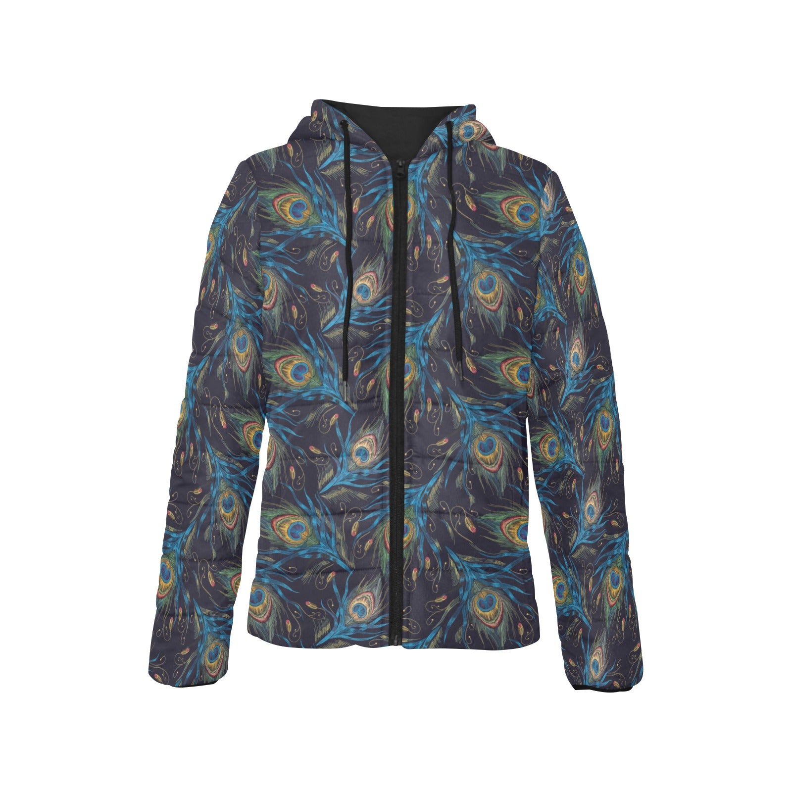 Beautiful peacock feather pattern Women's Padded Hooded Jacket