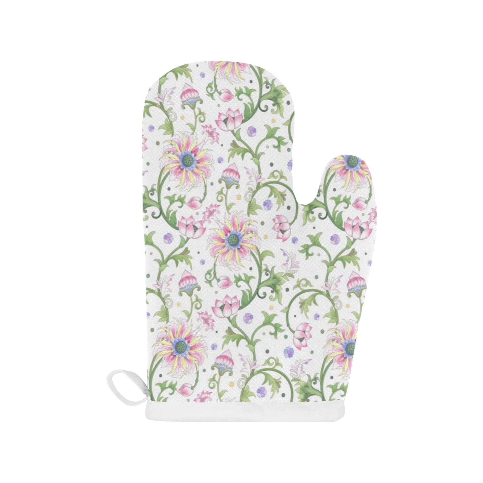 Beautiful pink lotus waterlily leaves pattern Heat Resistant Oven Mitts