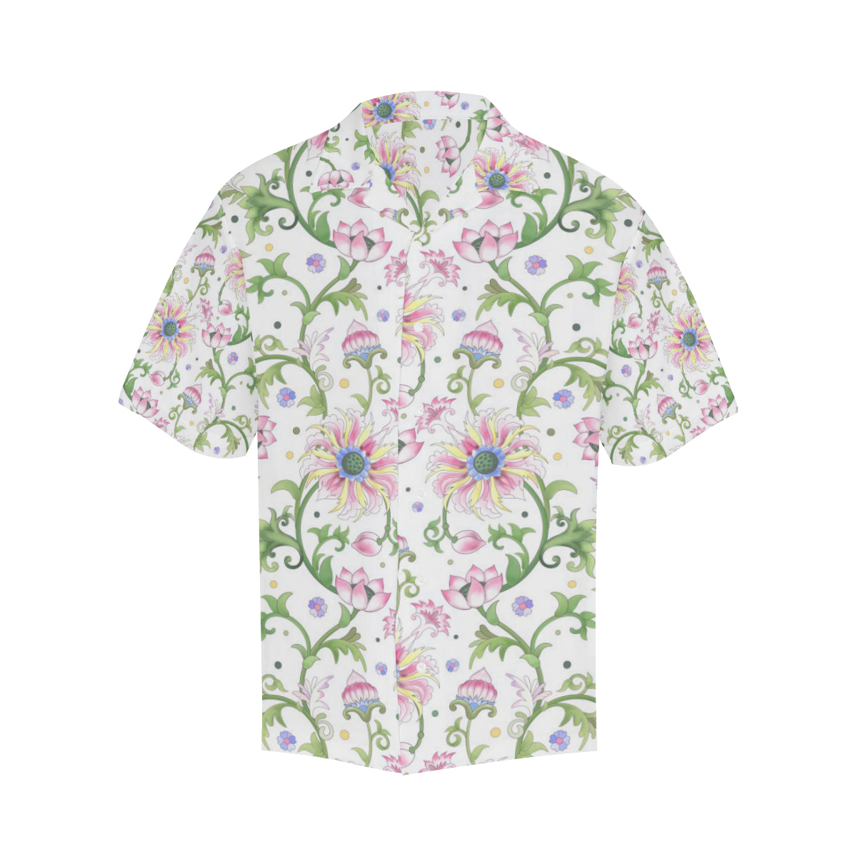Beautiful pink lotus waterlily leaves pattern Men's All Over Print Hawaiian Shirt is a uniqued design and limited item. It made to order, hand printed, and sewn with love in our factory.