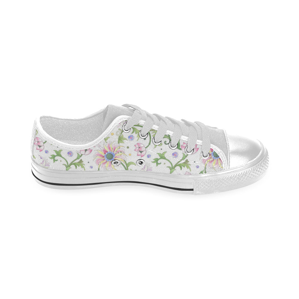 Beautiful pink lotus waterlily leaves pattern Men's Low Top Canvas Shoes White