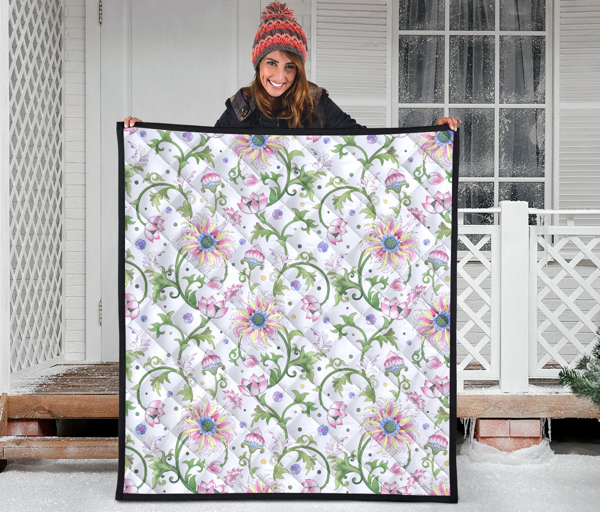 Beautiful Pink Lotus Waterlily Leaves Pattern Premium Quilt is a uniqued design and limited item. It made to order, hand printed, and sewn with love in our factory.