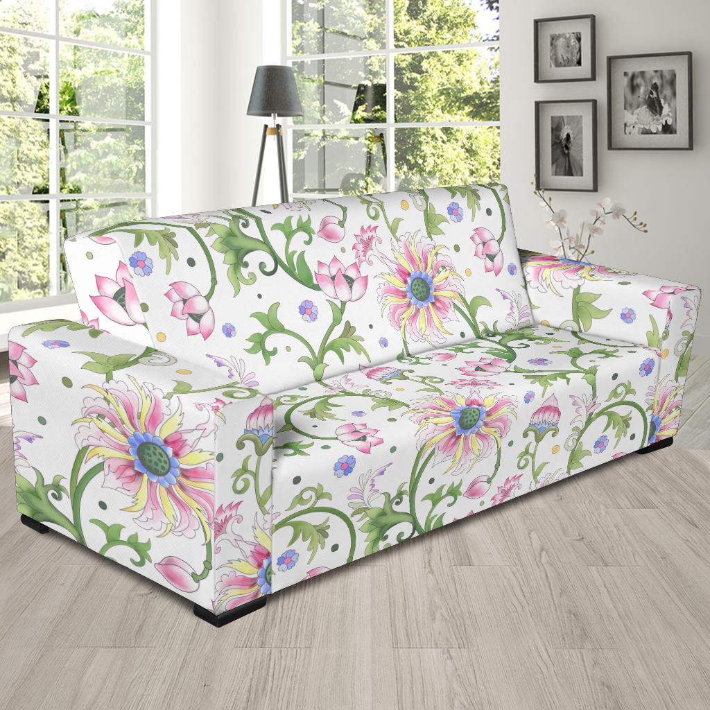 Beautiful Pink Lotus Waterlily Leaves Pattern Sofa Slipcover