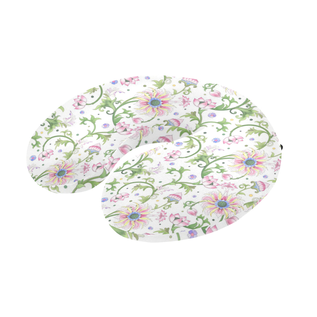 Beautiful pink lotus waterlily leaves pattern U-Shaped Travel Neck Pillow